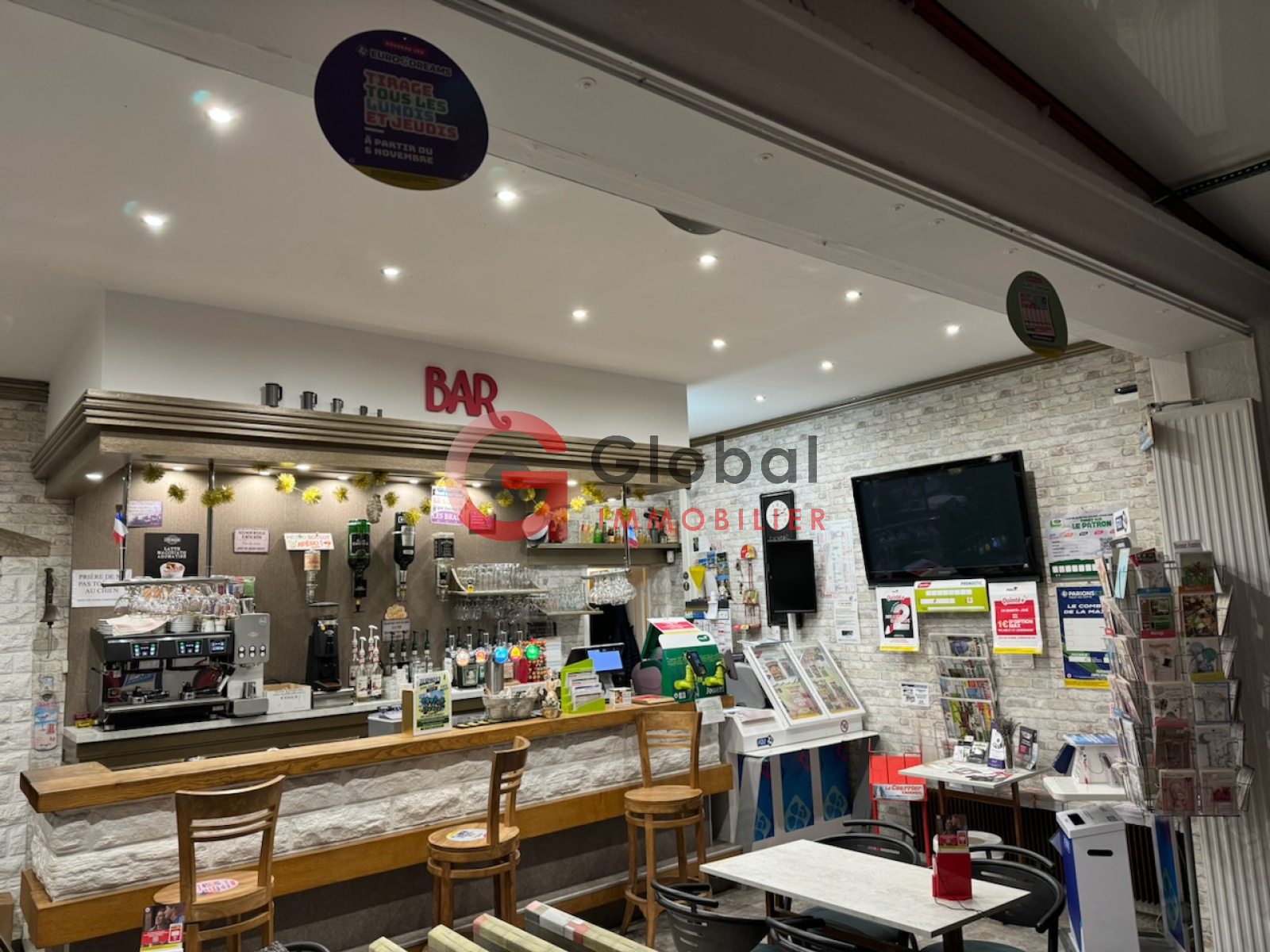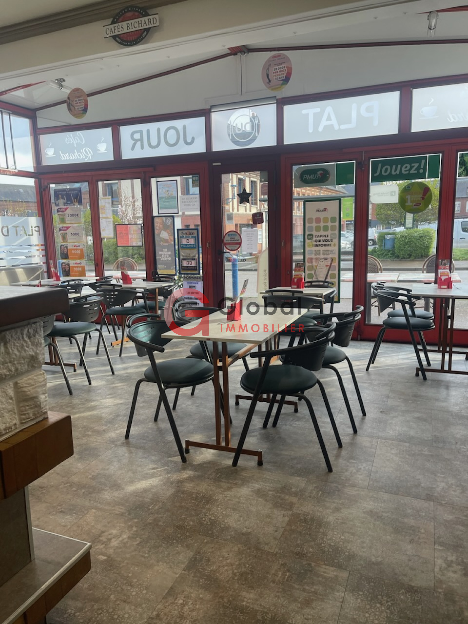 Hyper centre ville de Yerville, proche de Yvetot : fond de commerce de 70 m² avec 40 places assises. Cuisine professionnelle neuve de 6 m². Terrasse arrière de 40 m². Logement de 4 pièces aux étages. Bar, brasserie, plat du jour, point colis Mondial relais, jeux, FDJ, PMU.