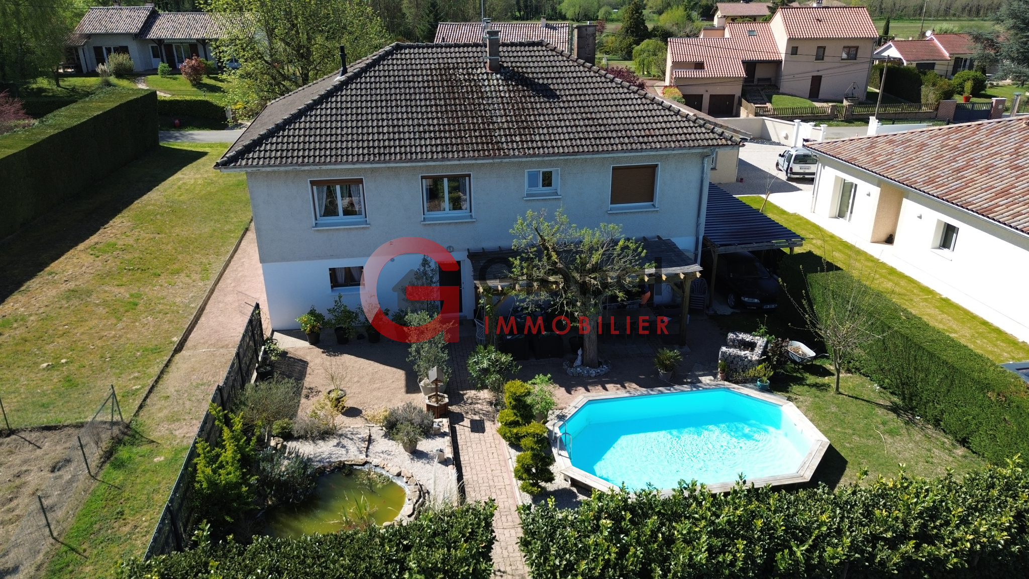 À l’extérieur, ce bien d’exception est complété par une piscine ainsi qu’une charmante mare,