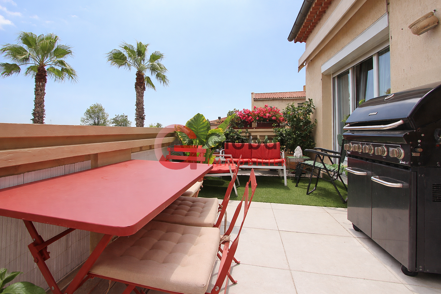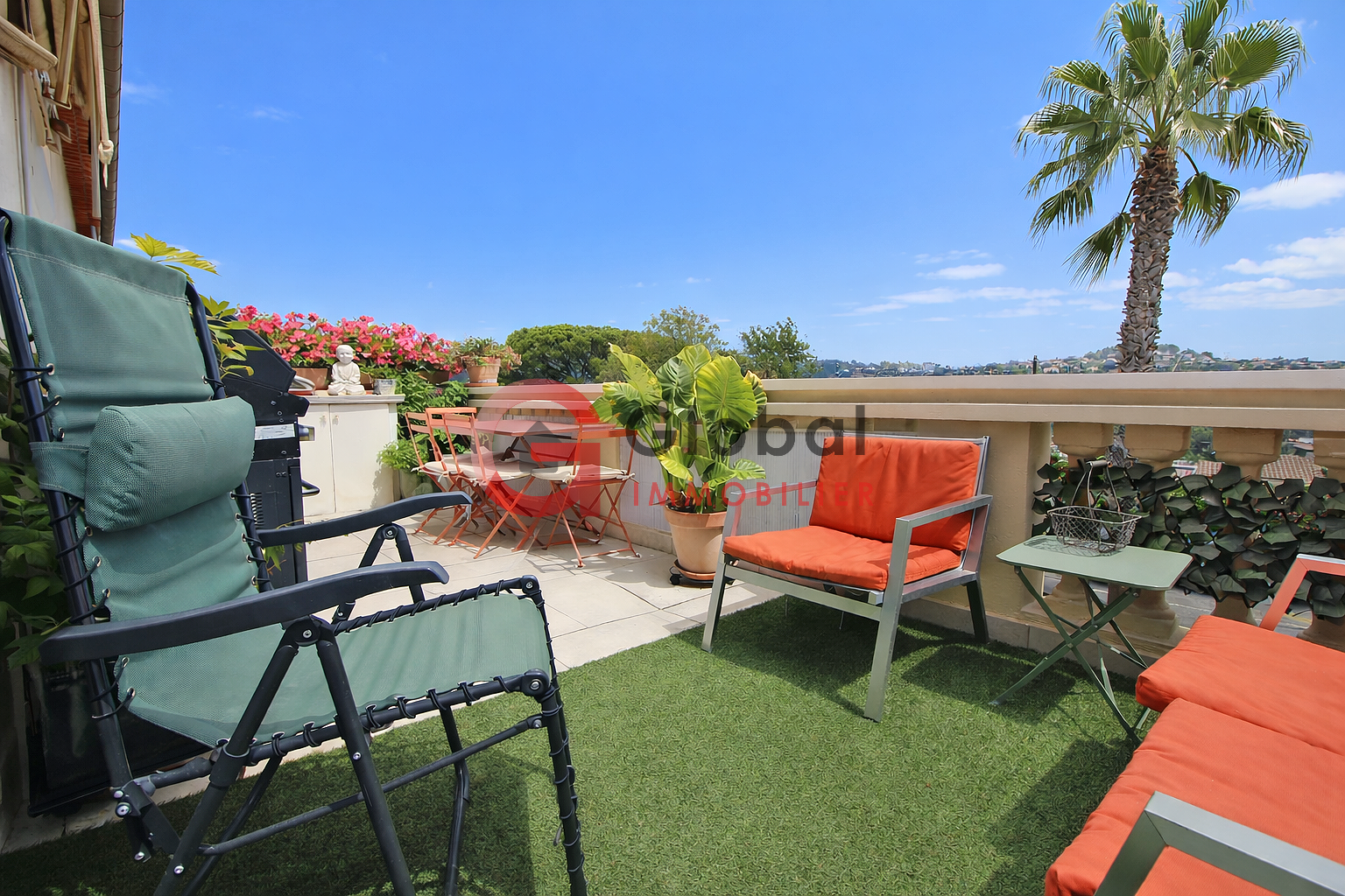NOUVEAUTE !!! LIMITE LA COLLE SUR LOUP, A VILLENEUVE LOUBET Dans une résidence prisée, sécurisée avec gardien, bus écoles, piscine, pharmacie, coiffeur, kiné, médecin, tennis, jeux de boules,nombreux parkings visiteurs. Au 1er et dernier étage sans ascenseur, un très bel appartement d'angle traversant comprenant 3 chambres (donnant toutes sur une terrasse) et une belle pièce de vie & cuisine US donnant sur 2 terrasses. Il se compose d'une entrée servant 2 grandes chambres, de par et d'autres, dotées d'un grand dressing et salle de bain/wc indep. privatifs et enfin une 3ème spacieuse chambre. Prestations : nombreux rangements, double vitrage, volet roulant automatique centralisé, store toile motorisé, climatisation réversible, parquet massif dans la chambre parentale, interphone, une place de parking aérienne et 2 belles caves sur le palier, visophone.... Possibilité d'acquérir un garage sécurisé en sous sol avec un coin cave. Production eau chaude cumulus. Charges 190 € env. / mois avec eau froide incluse (défalcateur). Idéal famille ou résidence secondaire, à visiter sans tarder 06 02 71 79 09. Copropriété de 500 lots.