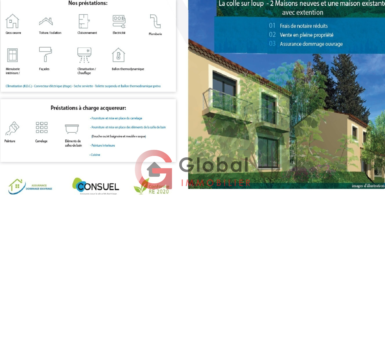 FRAIS DE NOTAIRE AVANTAGEUX - QUARTIER TRES RECHERCHE A LA COLLE SUR LOUP, proche St Paul de Vence, *** EXCLUSIVITE*** RARE SUR LE MARCHE. M. EHRLACHER vous propose dans un quartier recherché avec une belle vue sur le village de St Paul de Vence, proche école et toutes commodités, sur un terrain de 717 m², une jolie villa individuelle de 4 pièces (villa 1) en pleine propriété de 117 m² surface de plancher (faisant l'objet d'une extension sur une partie existante) avec une belle allure architecturale et aux normes thermiques actuelles (RE 2020). Au RDC, un grand espace de vie de 53 m² environ, un cellier, toilettes invités et une suite parentale de 22 m². A l'étage, 2 chambres avec une salle de bain et un wc indep. Un abri voiture et 3 places de parking privatives. Prestations : climatisation réversible au rdc, double vitrage, baies vitrées et volets roulants en alu anthracite, cumulus thermodynamique,wc suspendus. Vous vous installerez début 2025. Aucune avance ! (hors mis le dépot de garantie à la réservation), vous paierez votre villa à la remise des clés ! Frais de notaire avantageux.Toutes les garanties sont prévues. Avis du professionnel : On aime l'emplacement (possibilité d'aller au village à pied), l'exposition, le quartier pavillonnaire, l'accès aux transports publics à 2 pas, la construction stylée au gout du jour, la possibilité de construire une piscine et le prix ! Idéal famille. Pour plus d'infos 06 02 71 79 09
