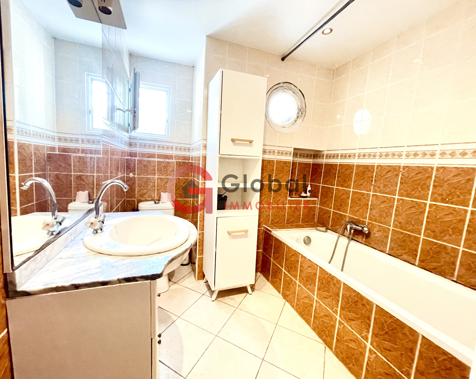 Une salle de bain et un wc