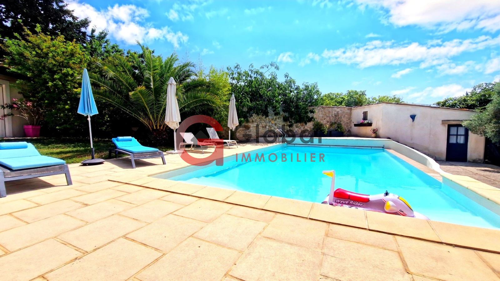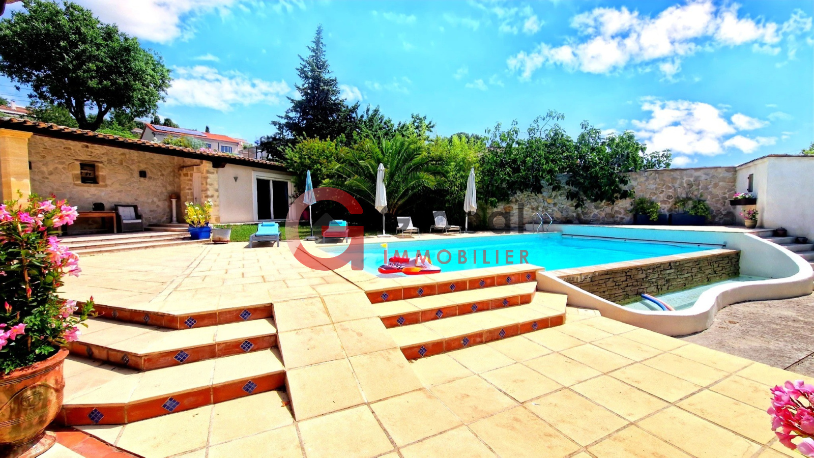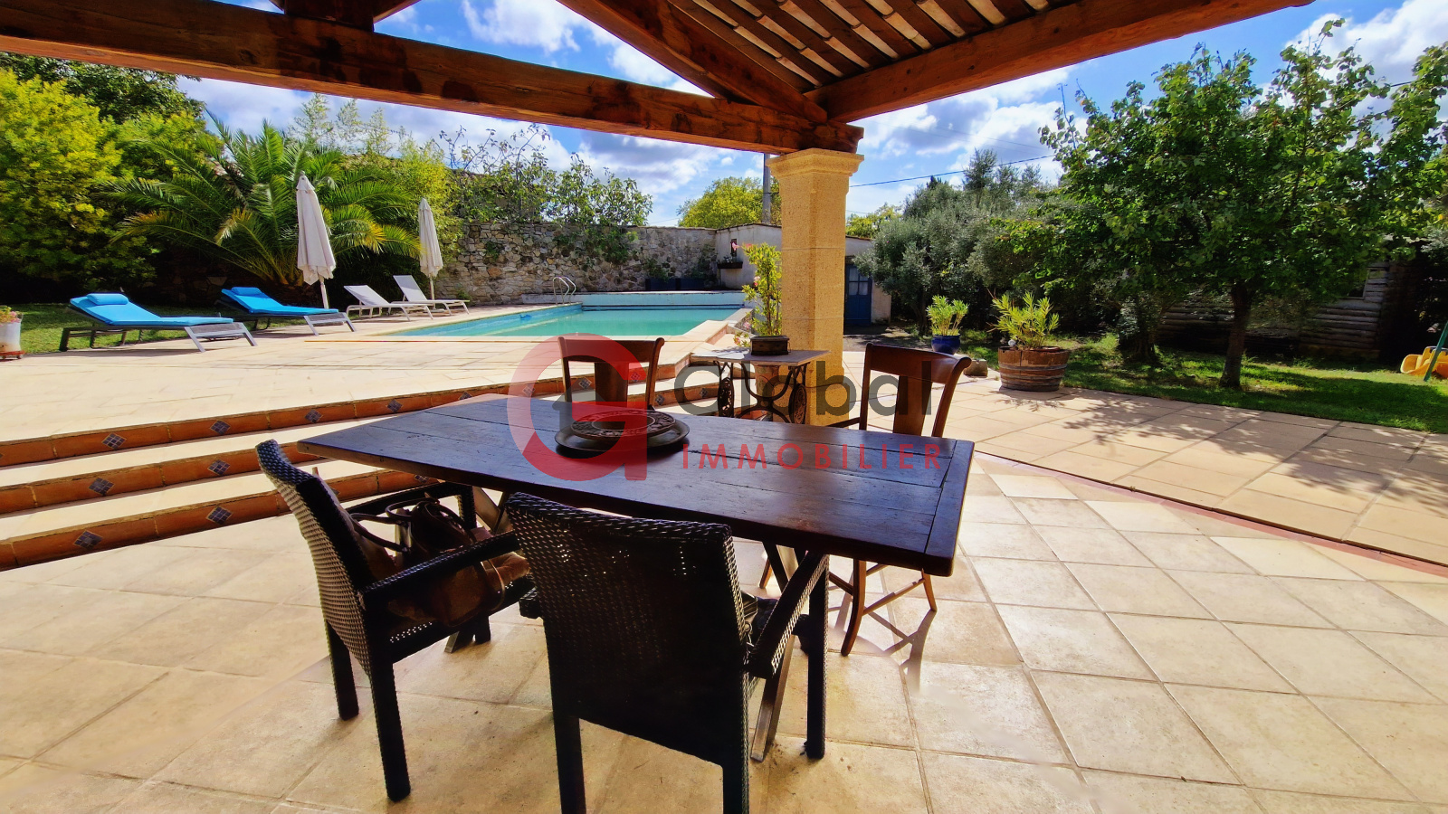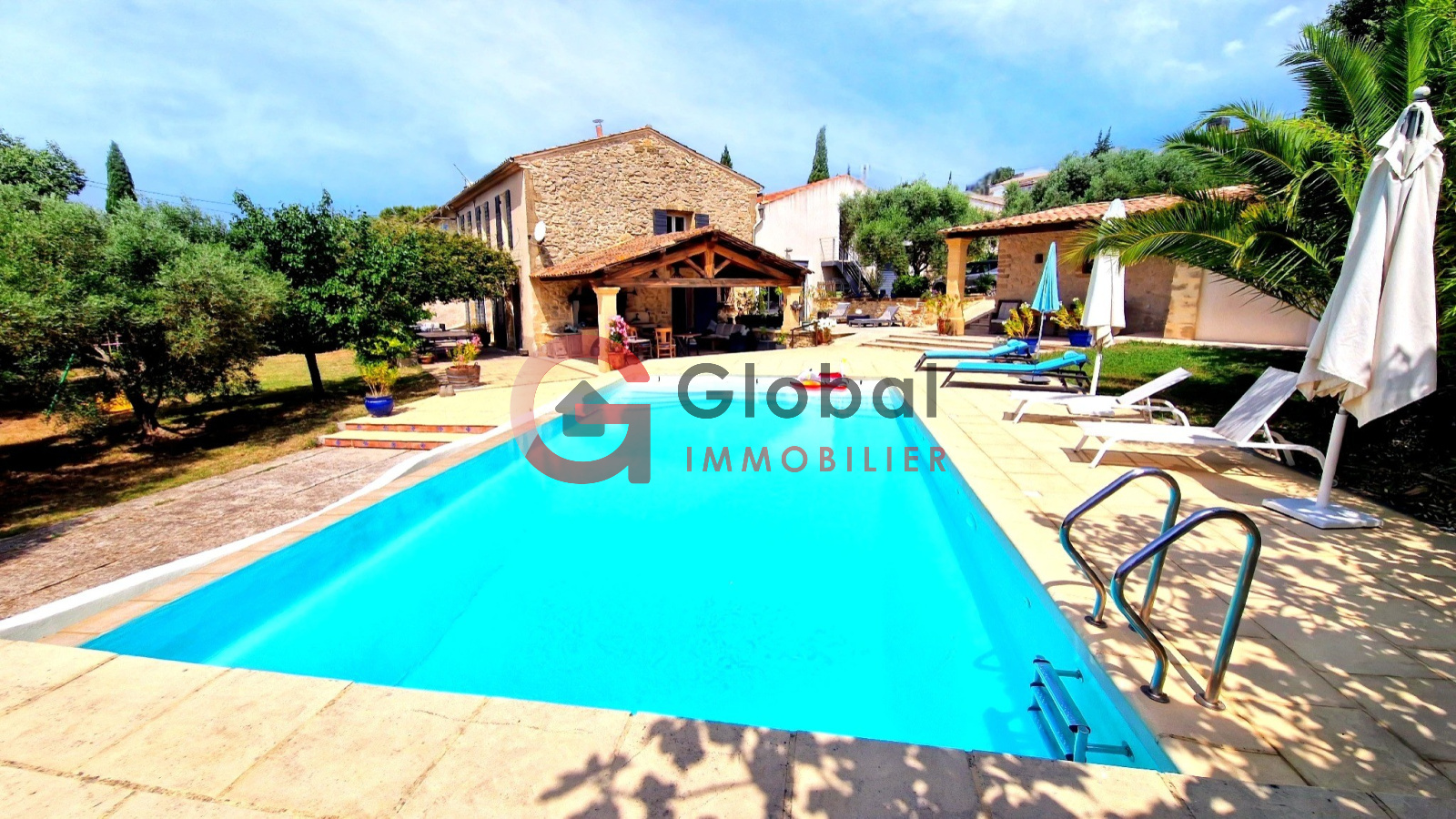 A découvrir sur Lançon-Provence (13680) : ce magnifique corps de ferme du 19ème siècle, rénové avec goût & matériaux de qualité, sur un joli terrain arboré de plus de 1300m², bénéficiant d'une piscine à débordement 10mx5m avec nage à contre-courant.