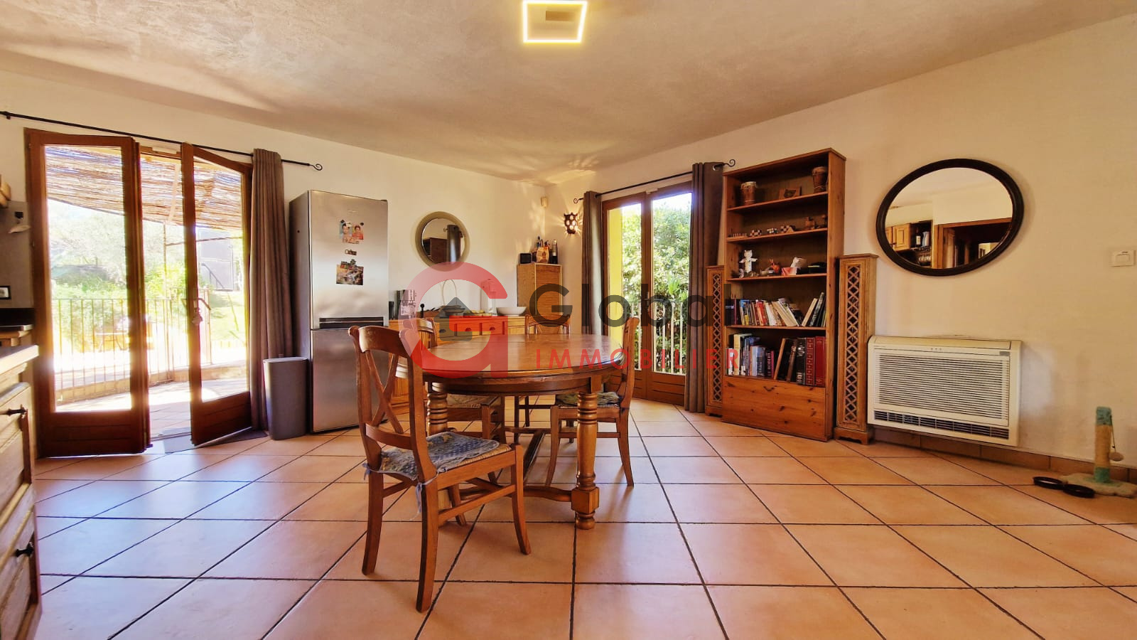 La pièce de vie spacieuse et traversante proche des 50 m², offre tout au long de l'année, un confort et une atmosphère chaleureuse grâce à la climatisation réversible et la cheminée (avec répartiteur de chaleur), idéale pour vos moments en famille !