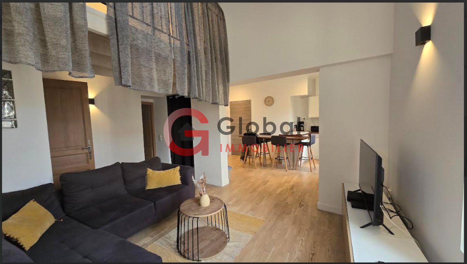 Enfin, à l'étage, un appartement remarquable offre une cuisine ouverte sur un séjour lumineux agrémentée d'un îlot central. Une chambre avec mezzanine donnant sur une cour intérieure et une seconde mezzanine complètent ce bien.