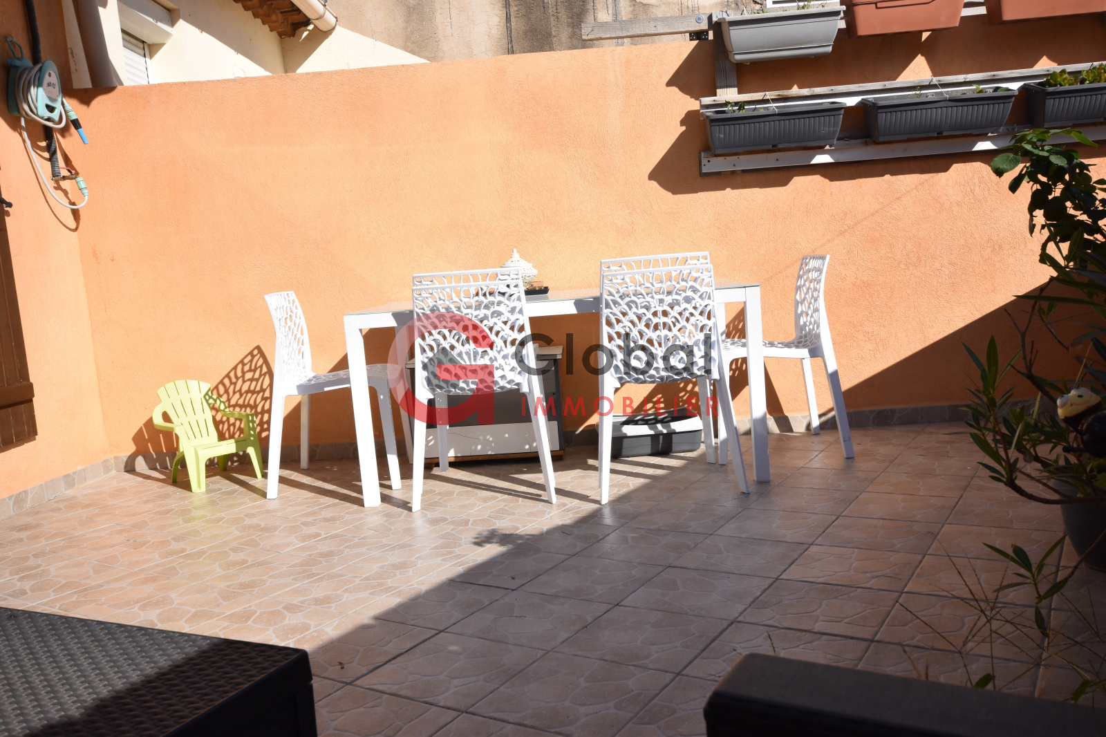 Karine Lopez vous propose dans le 11e arrondissement, quartier de la Pomme à Marseille, une maison de ville, un T4 disposant d'une charmante terrasse agréable.