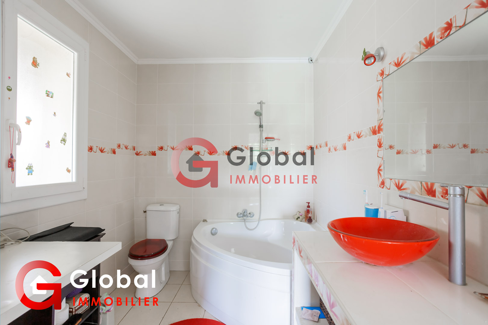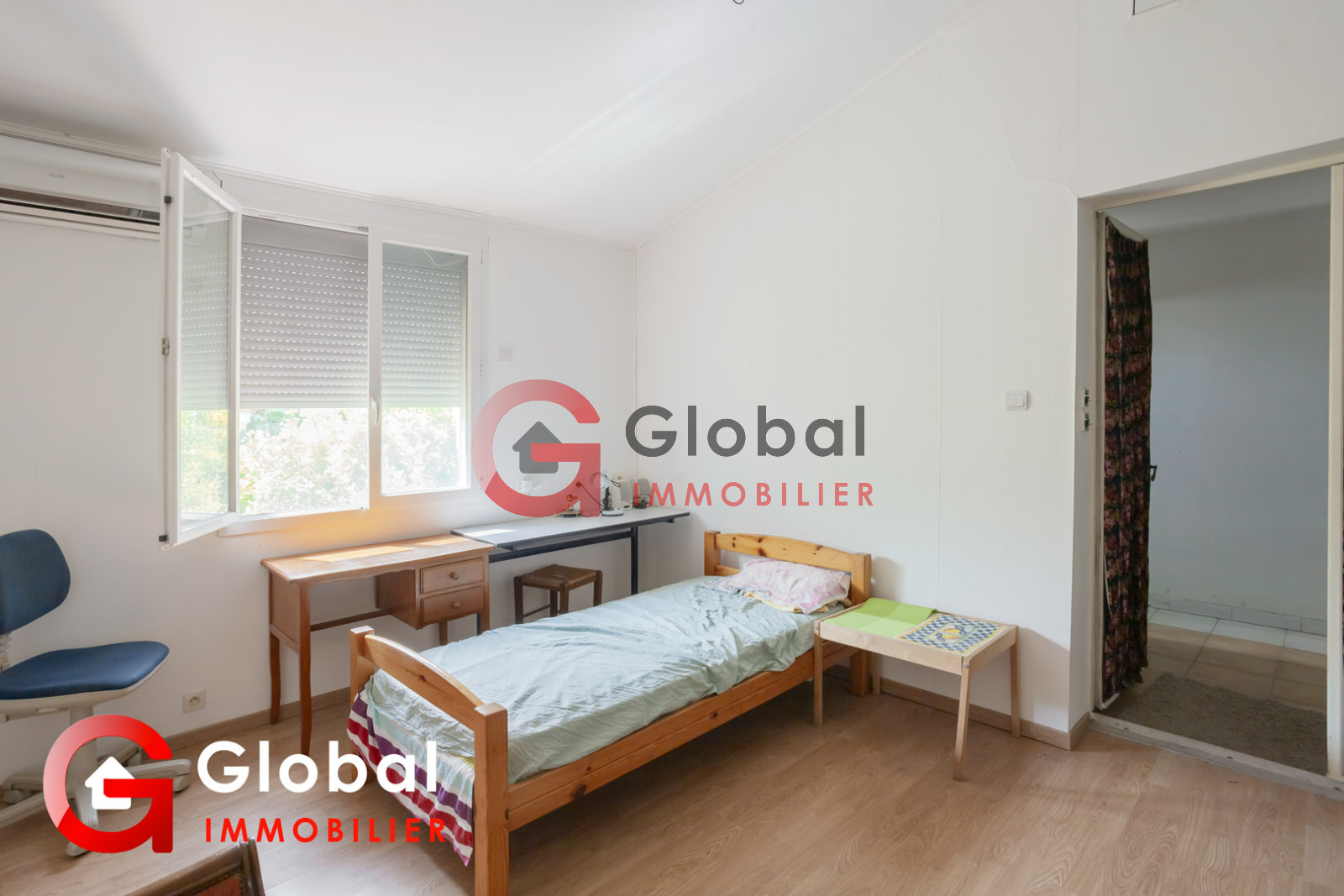 Porte fenêtre double vitrage avec accès terrasse Salle de bain Carrelage Clim réversible