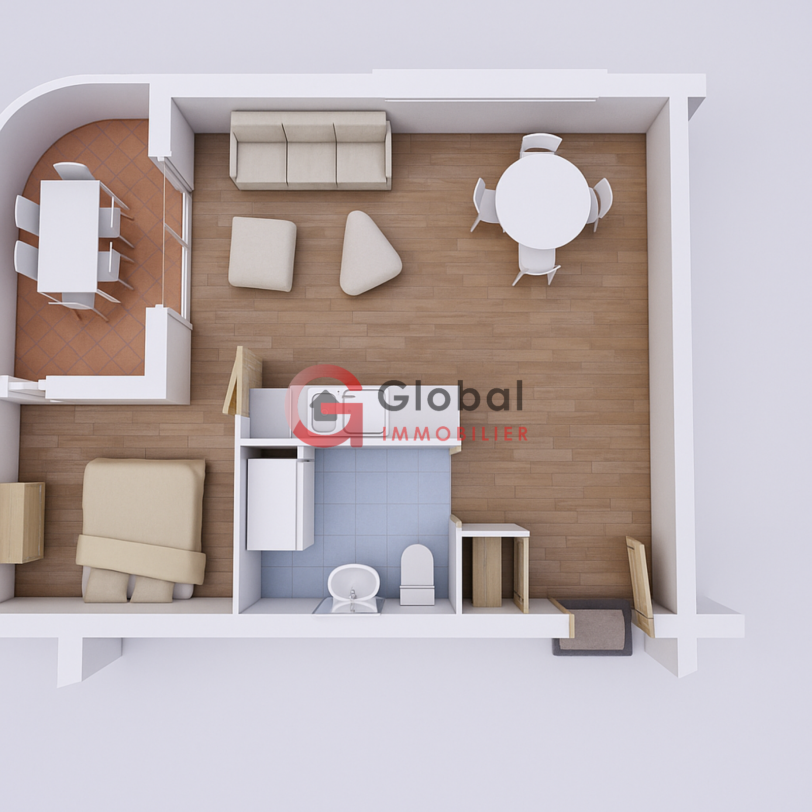 Idéalement placé au 1er étage, il se compose d’un séjour lumineux de 21,20 m² avec espace cuisine ouverte, d’une chambre confortable, et d’une salle d’eau moderne avec douche et WC.