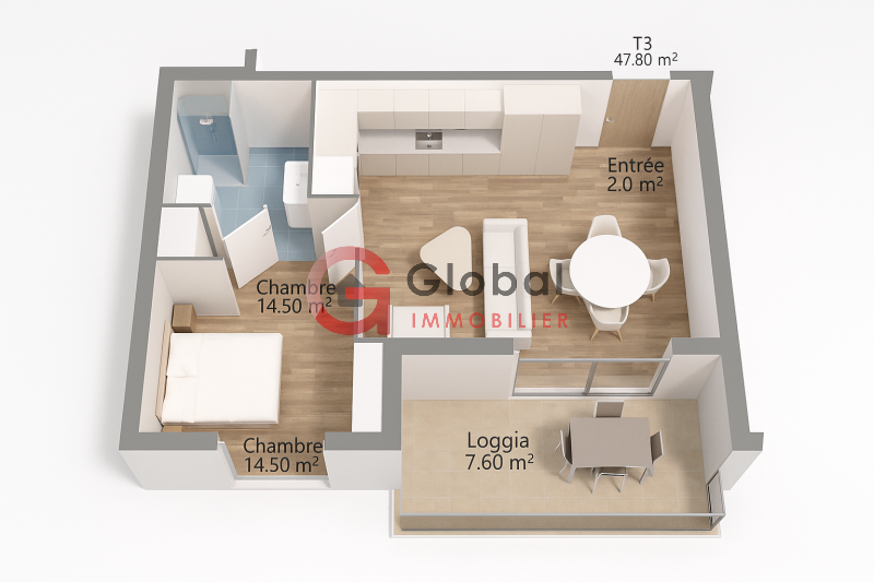 Côté extérieur, une loggia vient prolonger le séjour, permettant de profiter pleinement des beaux jours et d’un cadre paisible. L’environnement de la résidence, verdoyant et agréable, renforce le confort de vie au quotidien.