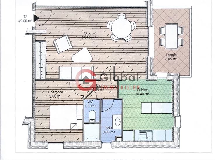 L’appartement bénéficie de prestations de qualité telles que la climatisation et le double vitrage, assurant confort et efficacité énergétique tout au long de l’année.