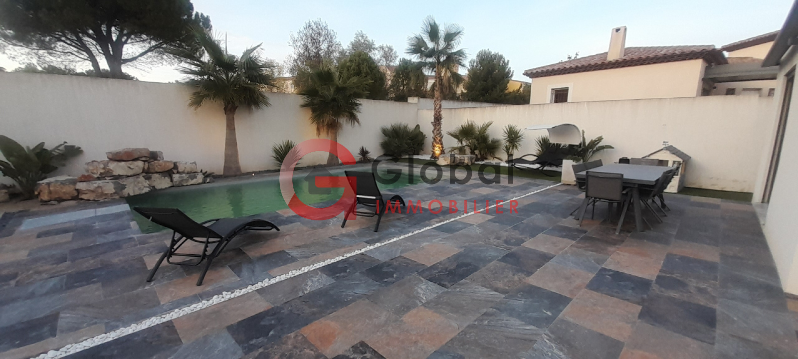 Véronique Gleizes vous propose à la vente dans un secteur prisé limitrophe à Martigues 13500,cette splendide maison contemporaine construite en 2014, non mitoyenne et sans vis à vis.Le bien d'environ 123m2 posé sur une généreuse parcelle de 570 m2 se situe dans un quartier où tranquillité rime avec qualité de vie! Le charme opère dès l'entrée avec une pièce de vie baignée de lumière ouverte sur une cuisine américaine dernier cri entièrement équipée(bar ,machine espresso,congélateur xxl,réfrigérateur.....),en plain pieds vous découvrirez aussi une suite parentale avec dressing d'une superficie confortable,coté nuit 3 chambres avec balcon , une salle de bain , wc et pour finir un garage communiquant.Concernant les extérieurs des plantations exotiques viennent mettre en valeur la piscine et son boulodrome,2 terrasses ainsi qu une aire de stationnement.Matériaux de qualité,pompe à chaleur,menuiseries alu,moustiquaires,arrosage automatique.....Maison coup de coeur idéale pour une famille à la recherche d'un cadre de vie contemporain et paisible.Pour toute damandes contacter Véronique au 06.75.74.67.43
