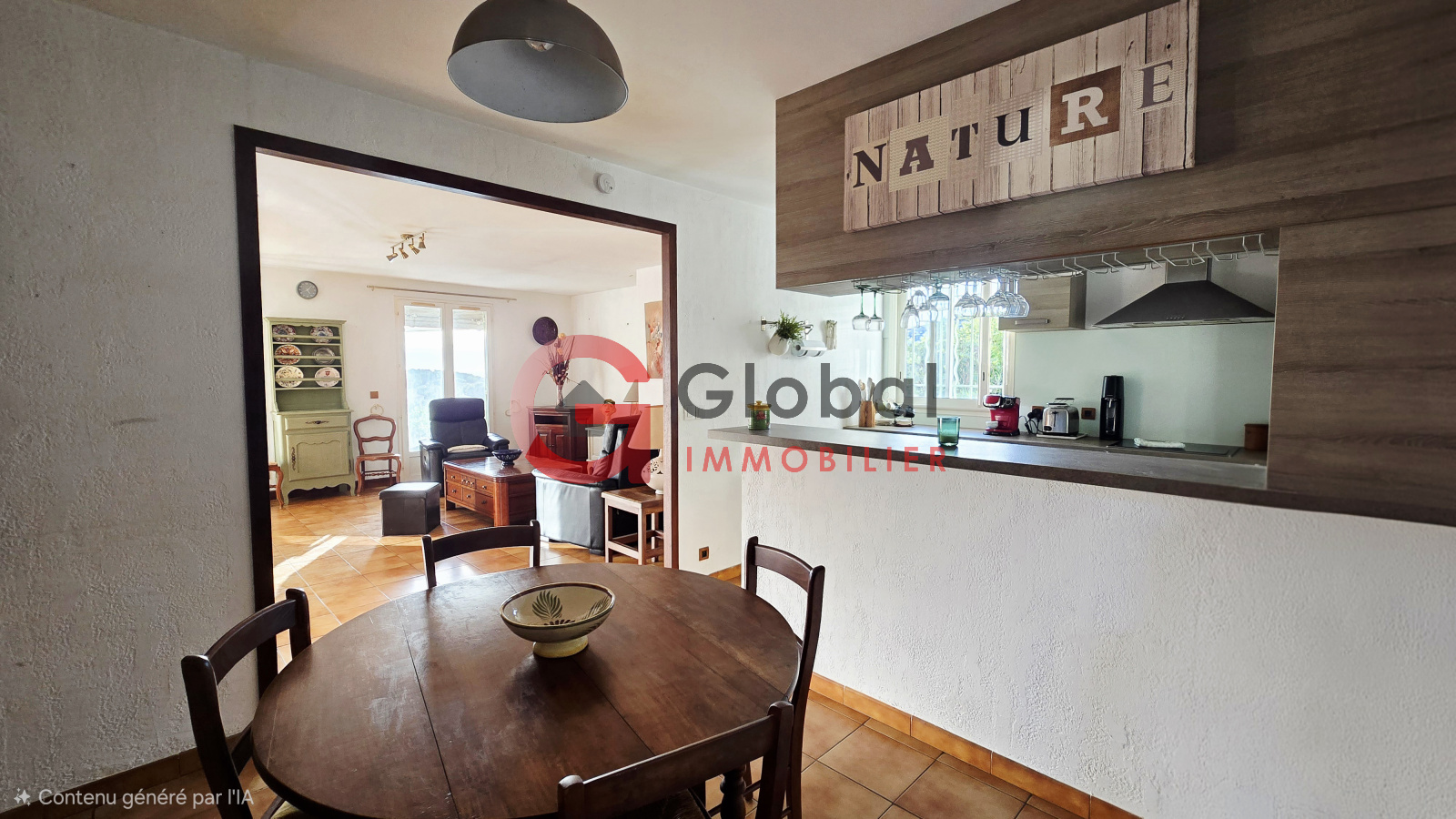 Cuisine ouverte sur le coin repas et le salon ,salle à manger.