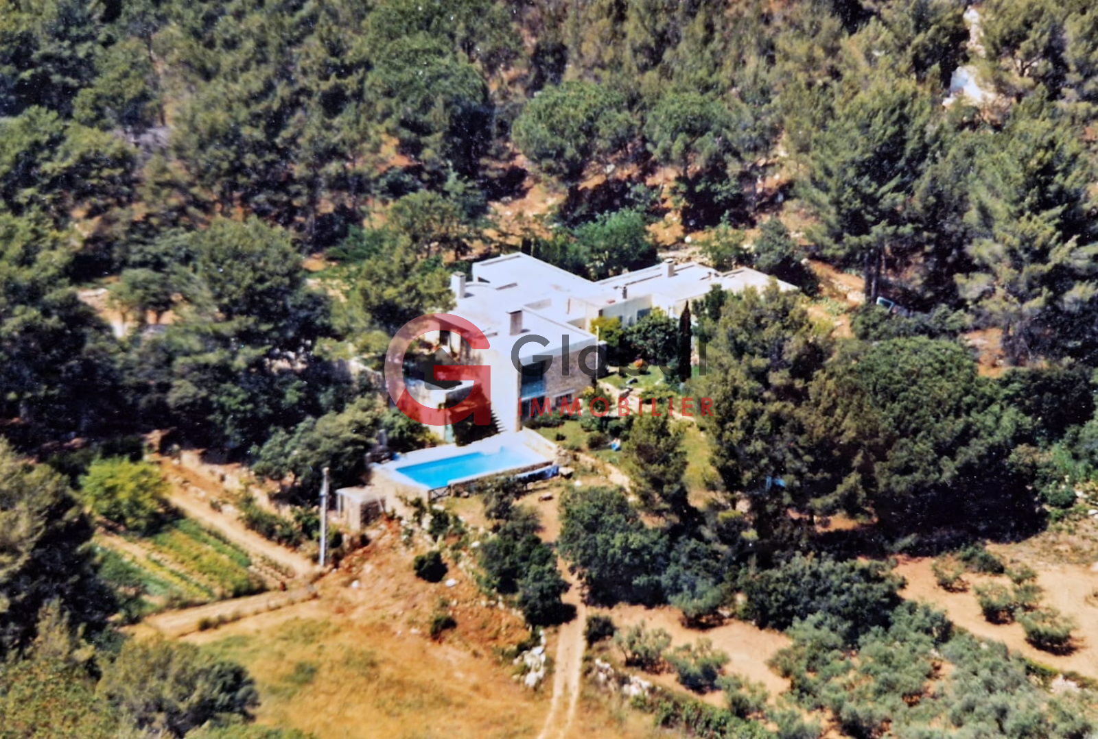 Emilie DEBENOIT vous propose cette propriété de plus de 190m² avec piscine, nichée sur les hauteurs d'une colline, vous garantissant une tranquillité absolue, loin de toute agitation.