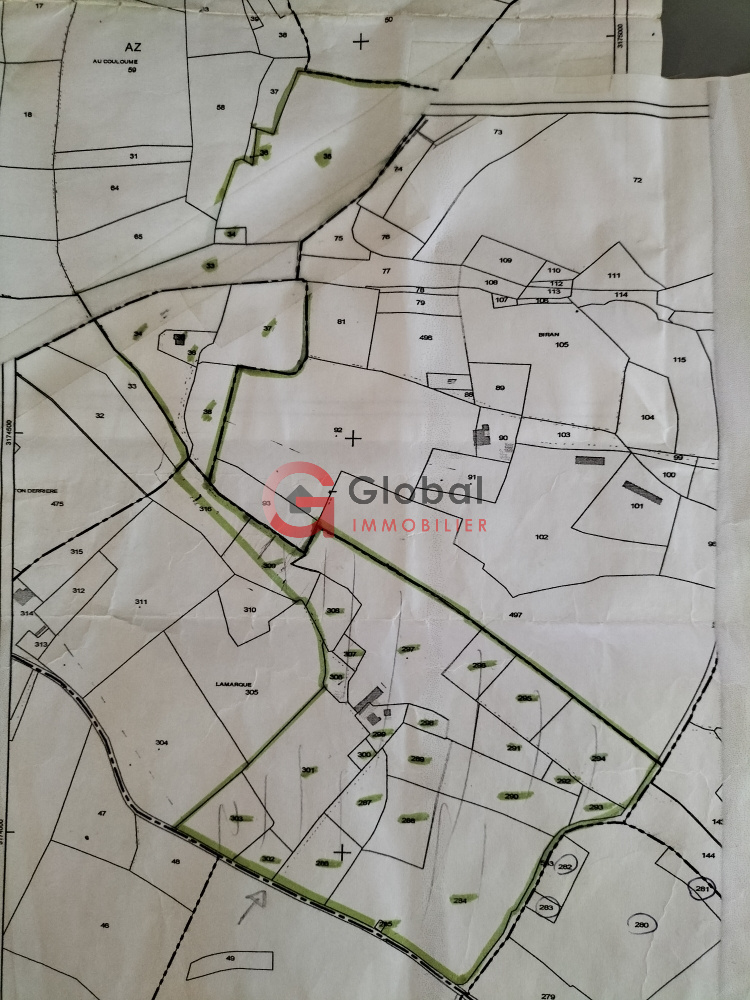 Proche du village d'Aignan, Marc Bouillant, mandataire EI pour le réseaux Global Immobilier, vous propose cette propriété agricole de près de 27 ha de prairies clôturées, dont environ 1.5 ha de bois et le tout d'un seul tenant, avec relief légèrement vallonné et splendide vue sur la chaine des Pyrénées, sans voisin proche, sans aucun vis-à-vis, ni aucune autre nuisance...Voisin le plus proche à 360 m. Un endroit plein de charme et enchanteur, avec source, ruisseau et mare traversant la propriété qui conviendrait parfaitement à de l'élevage de bovins, moutons ou chèvres, ou à l'élevage ou la pension de chevaux, d'ânes ou même de chiens... ou autres usages agricoles. Deux dépendances d'environ 400 m² et 200 m² sont actuellement équipées de box à chevaux, local sellerie, grange, garage voiture et engins agricoles. Une autre dépendance d'environ 30 m² abrite atelier et cellier. Une maison en galets, colombage et torchis de près de 90 m² au sol, non habitée actuellement, est à restaurer entièrement si besoin, à moins de rebâtir en lieu et place une maison d'habitation ou un autre bâtiment agricole, selon vos besoins. Deux autres anciennes maisons cadastrées en ruine, éloignées de plusieurs centaines de mètres entre elles, avec chacune un accès privatisable, pourraient être reconstruites si besoin pour divers usages. Une des parcelles constructibles est déjà alimentée en eau de consommation et en électricité triphasée. Un hébergement existe aujourd'hui par trois mobil-homes représentant au total une surface de vie d'environ 75 m², avec 5 chambres, deux séjours, deux kitchenettes trois salles d'eau, deux WC et des terrasses. Les deux plus grands mobil-homes de 30 m² chacun font partie de cette vente. Le troisième mobil-home est une option d'achat possible en supplément si besoin. Une propriété atypique et rare, en pleine nature et disposant d'un énorme potentiel. DPB sur la totalité.
