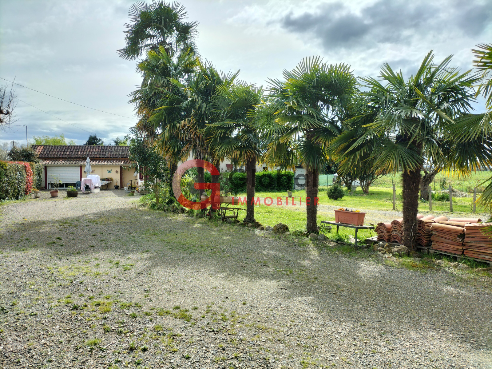 Extérieurs : Le tout est implanté sur un terrain arboré de 1400 m², avec une cour gravillonnée accueillante, dans un quartier résidentiel de quelques habitations, sans nuisances ni vis-à-vis.