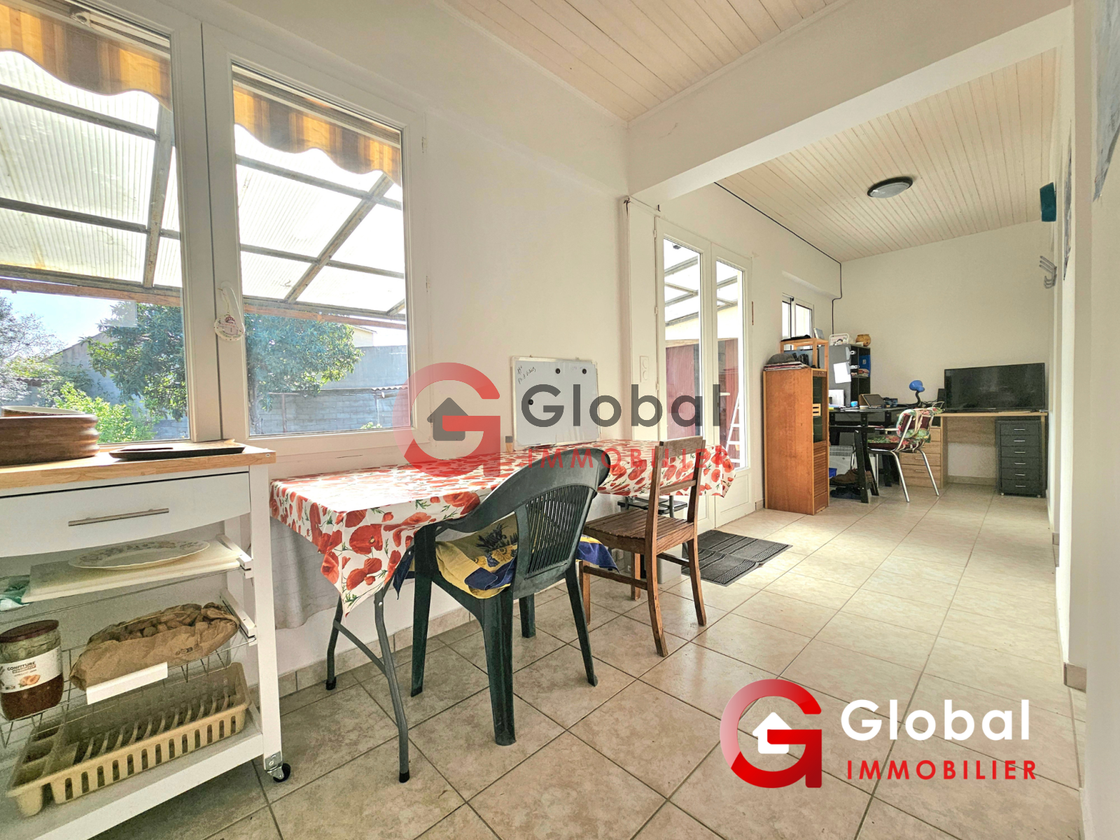 Laura OBERLE GLOBAL IMMOBILIER POMEROLS 34810, vous propose cette maison de 65m² de plain-pied avec un studio de 40m², édifiée sur une belle parcelle piscinable de 673m². Vous disposerez, d'un salon, d'une salle à manger avec cuisine ouverte, de 2 chambres et d'une salle d'eau avec wc. Coté jardin, vous profiterez d'une terrasse couverte de 45m², d'un espace potager. Pour votre confort, cette maison propose un atelier de 17m², 3 appentis et 4 places de stationnement.
