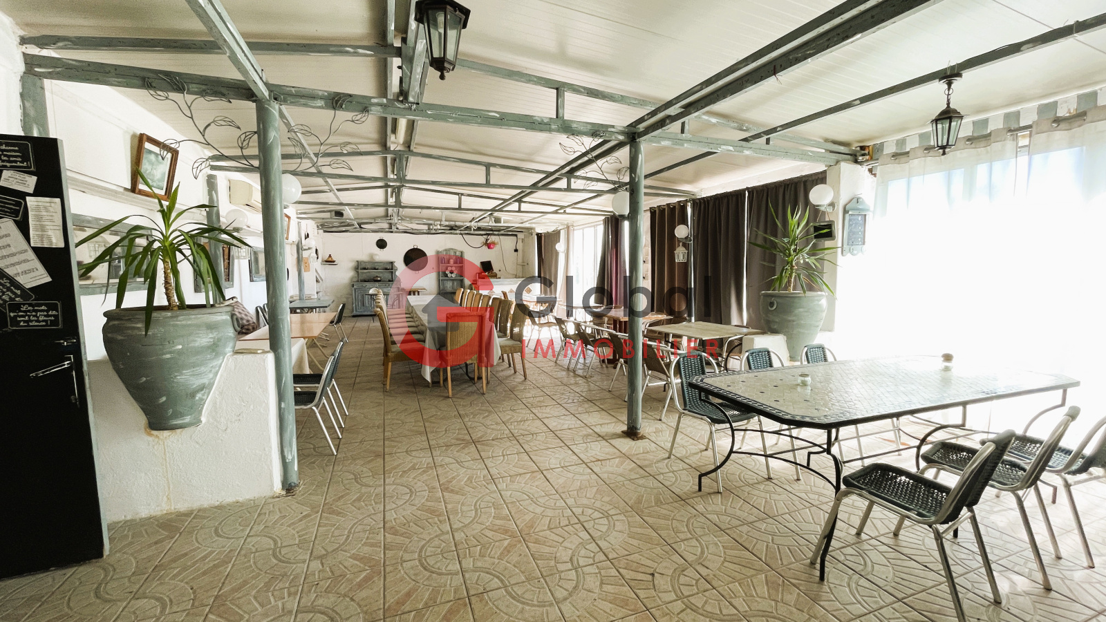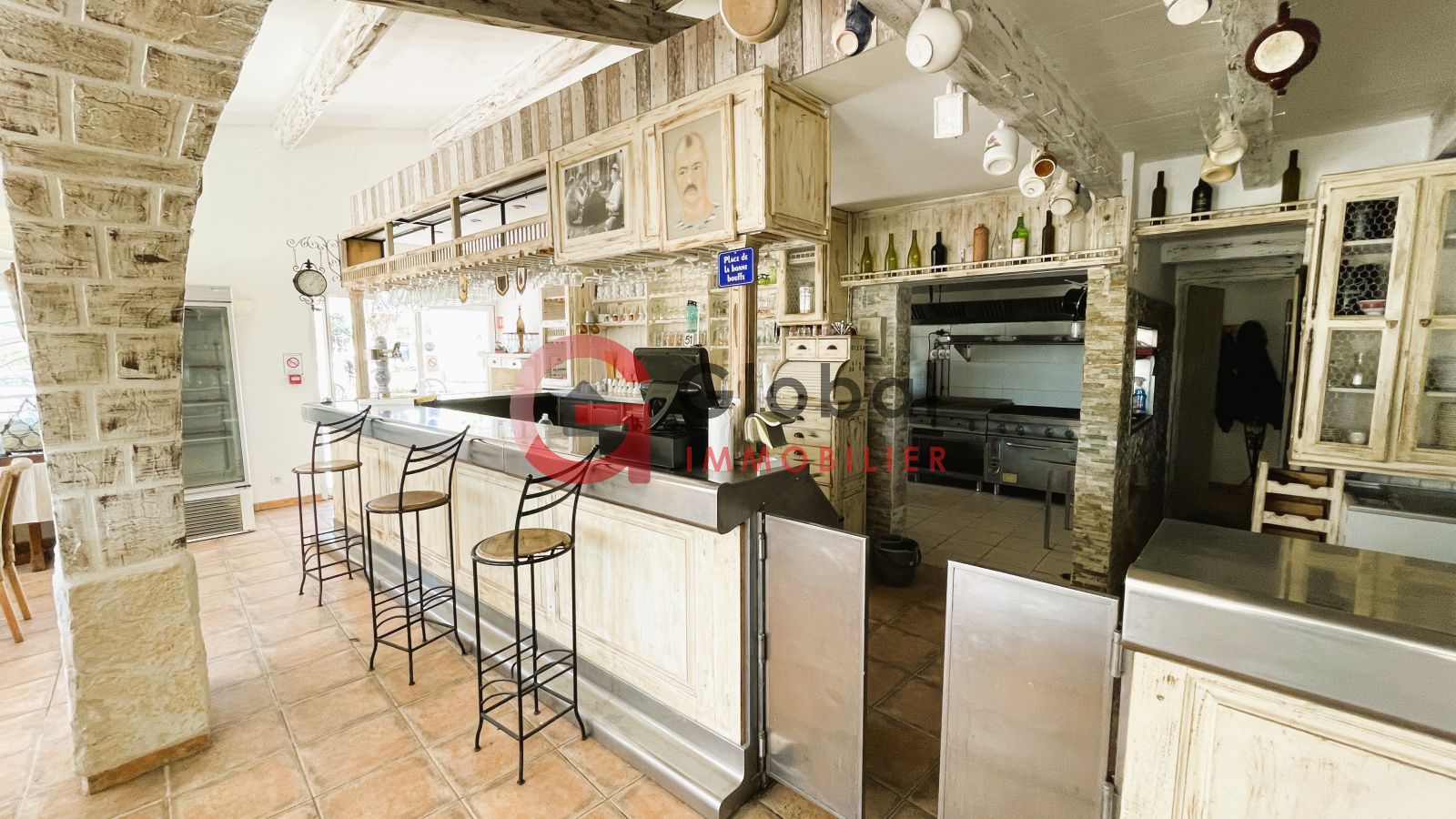 Un ancien restaurant avec 2 grandes salles et bar, cuisine pro, 2 sanitaires /WC, le tout d'environ 190 m² et grandes terrasses extérieures.