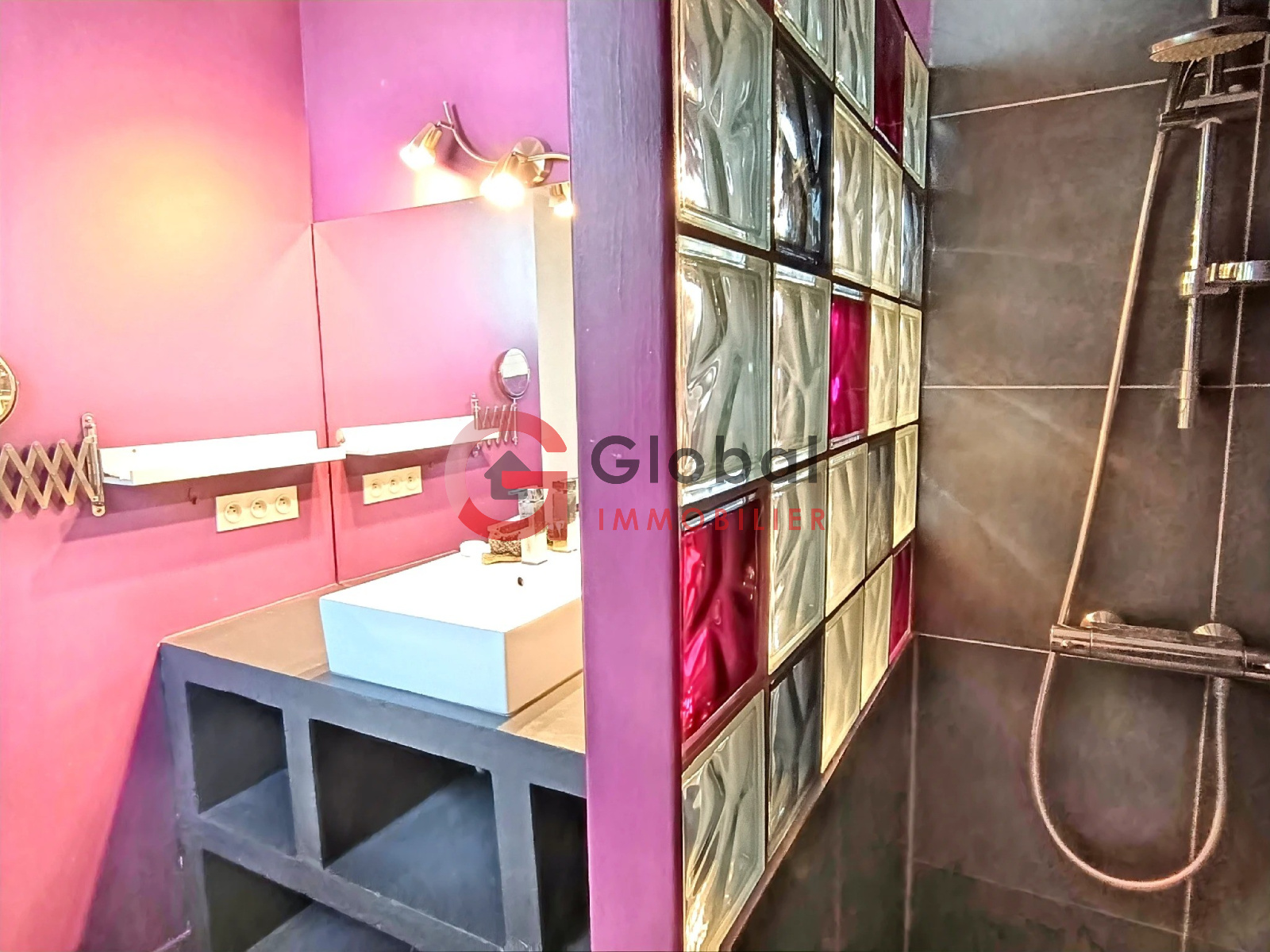 À l’étage, le palier dessert deux chambres (dont une de 13 m²), un bureau ou 3ème chambre d’appoint de 8.90 m² et une salle d’eau.