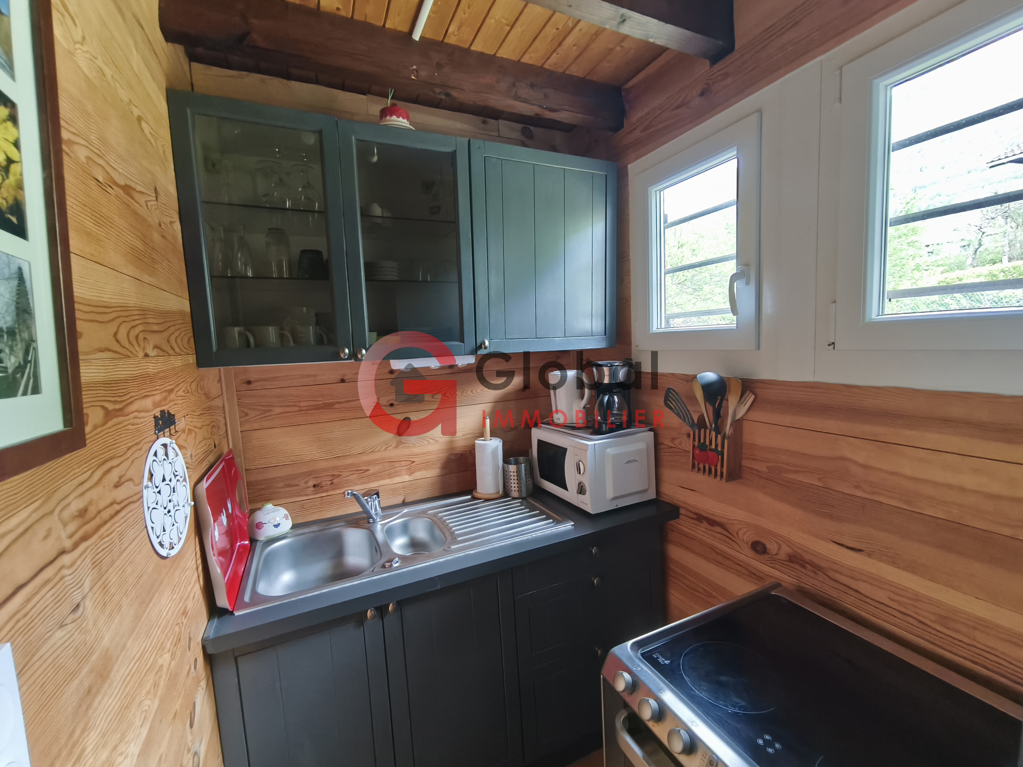 Mignon chalet vendu entièrement meublé style montagnard.