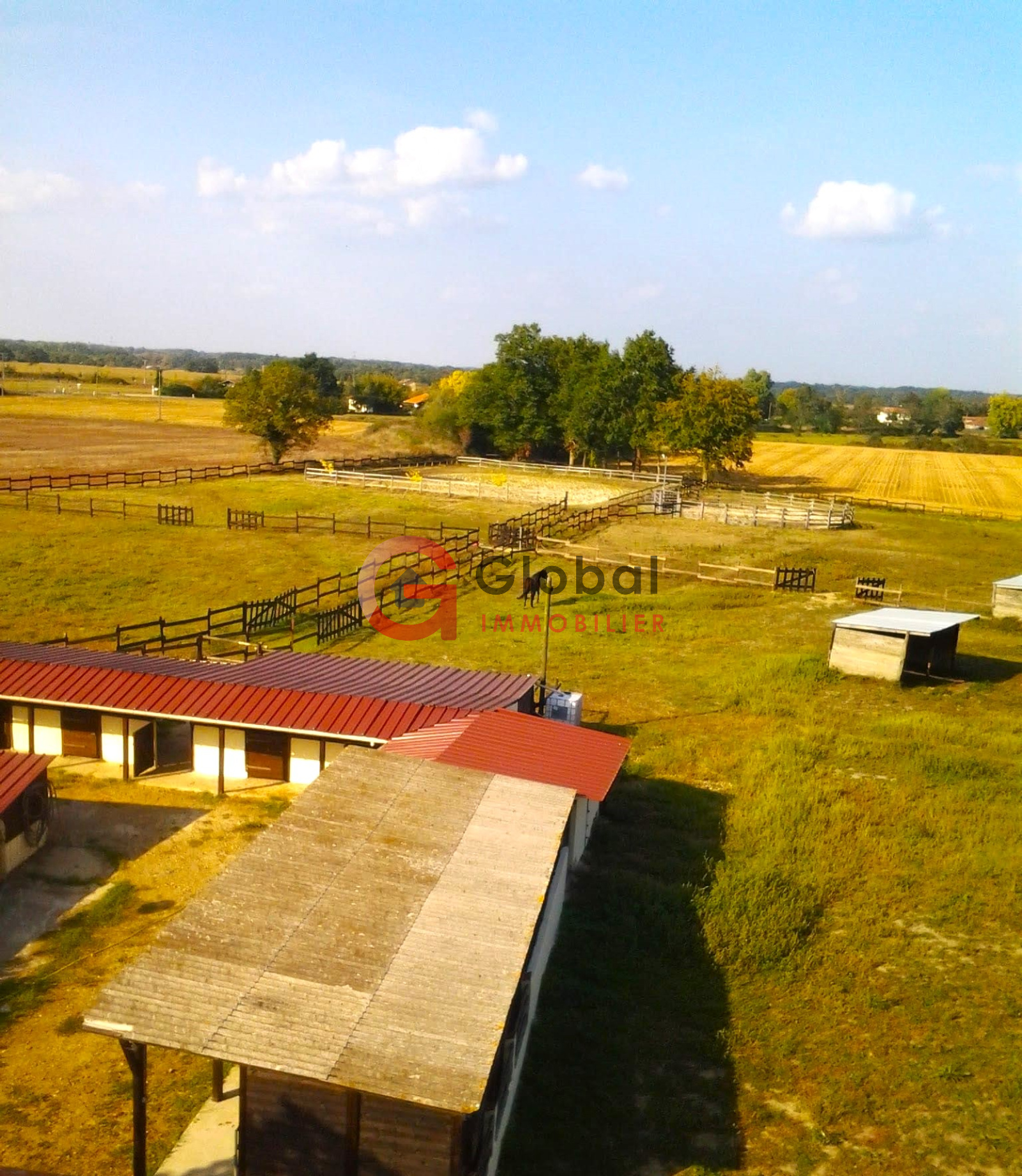 Vous voulez vous occuper de chevaux et souhaitez disposer en plus de revenus locatifs conséquents, cette propriété fera votre affaire, à moins que vous ne l'utilisiez pour un autre projet ... les possibilités sont nombreuses. Proche de tout mais isolé au bout d'un chemin, au calme loin des premiers voisins, Marc Bouillant du Réseau Global Immobilier (0630 079 665) vous propose dans les Landes, sur la commune de Grenade sur l'Adour 40270, cette rare et belle propriété équestre constituée d'un immeuble de rapport ancien bien rénové (performance énergétique C/A, chauffe-eau et radiateurs neufs, compteurs invividuels), composé de 8 appartements 1xT2, 1xT3, 2xT4; 2xT5 + 2 xT2 aménagés dans deux annexes. Une autre annexe d'environ 150 m² x 2 niveaux possibles, permettrait d'aménager des surfaces locatives supplémentaires, ou tout autre aménagement équestre. Une piscine 10x4 avec un pool house + salle de sport + un local pour 2 roues + autres annexes agrémentent les parties communes. S'ajoutent à cet ensemble des aménagements équestres avec 14 box pour la pension jusqu'à 24 chevaux, 1 carrière de 30x50 m, 1 rond de longe de 18m de diamètre, 3 locaux de sellerie, 1 hangar de stockage fourrage, 5 abris de prés, 6 paddocks, 1 puits et des récupérateurs d'eau de pluie. Le tout posé sur terrain plat de 6 ha + 16 ha contigus à vendre via la SAFER en complément si besoin, avec accès directe à des chemins de randonnées équestres reliant notamment Aire sur l'Adour à Dax (~100 km). Les appartements, majoritairement loués en courts séjours, sont meublés et en excellent état. Le système d'assainissement est récent et dimensionné pour 22 équivalent habitants. Les toitures principales ont été refaites. Revenus locatifs possibles > 120 k€. Revenus équestre possibles > 90 k€ pour pension. Autres revenus d'activité possibles selon projet. Charges annuelles ~20.000 € (élec, eau, TF...). Excellent rendement !