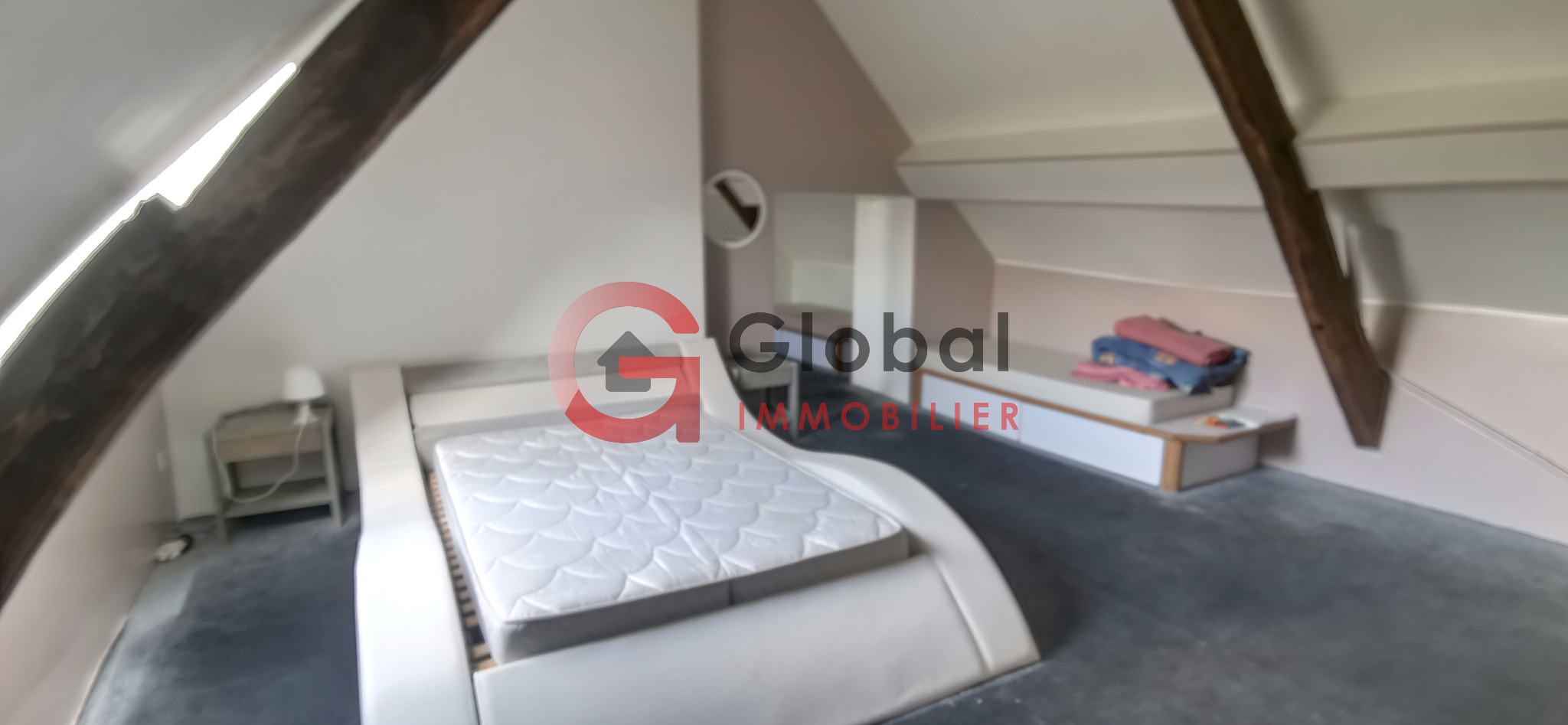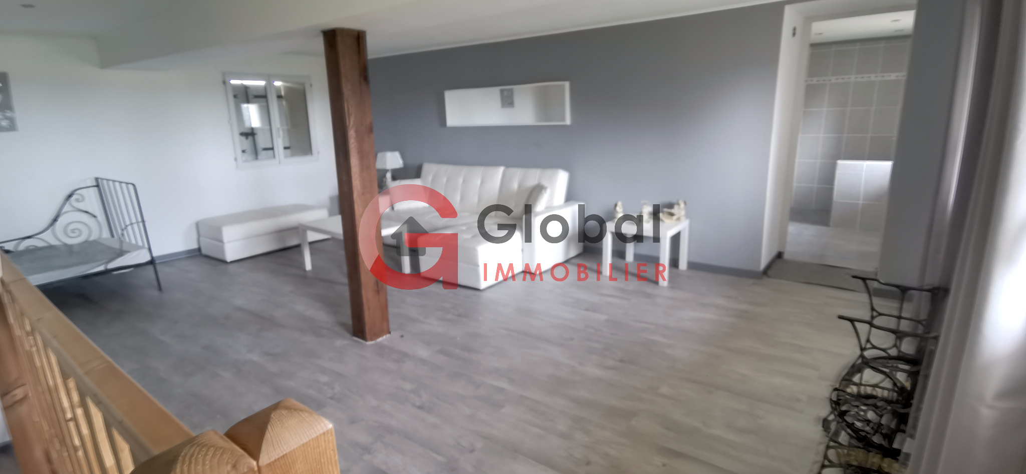 À l'étage, une grande mezzanine de près de 29 m2 dessert une salle d'eau moderne avec WC, une buanderie attenante et une chambre spacieuse.