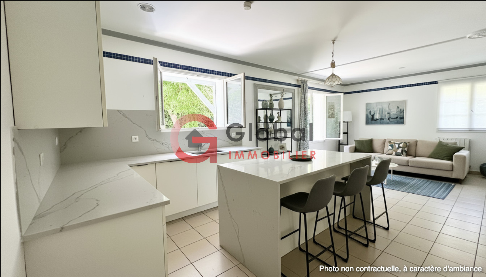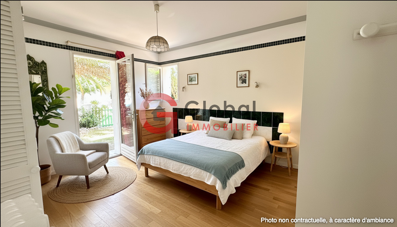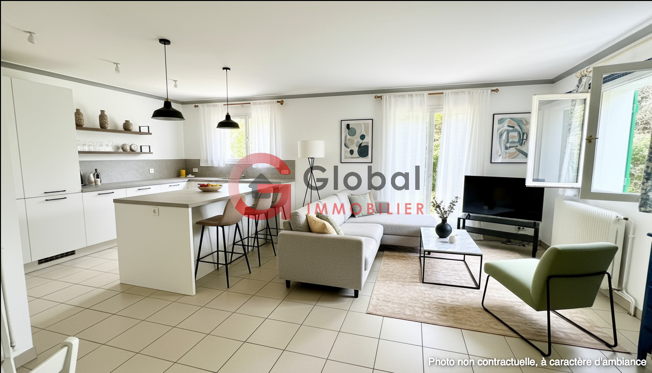 Isabelle Raynaud, Global Immobilier vous propose se bien rare une belle maison familiale indviduelle de plain-pied de 119 m2 au sol piscinable située dans une impasse au calme.