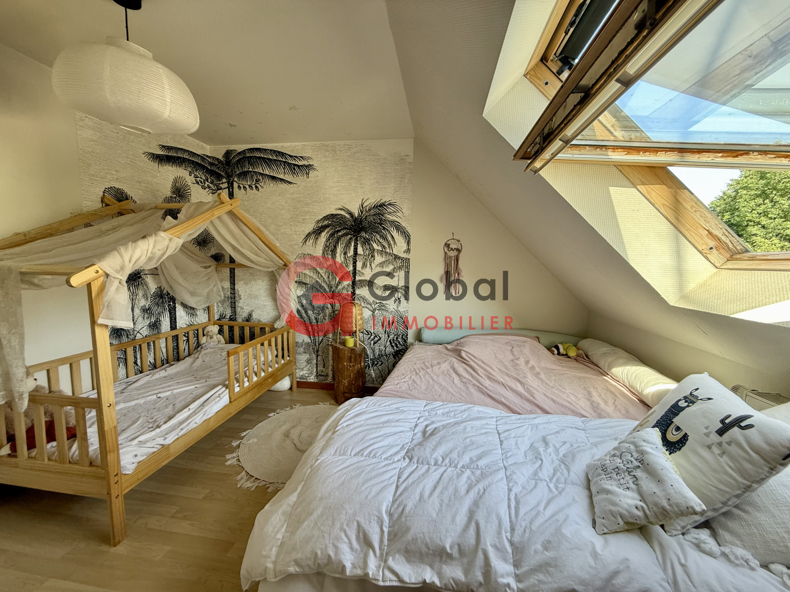 Cette bâtisse de 142m2 habitables se compose : d'une entrée, de 2 grands et lumineux séjours, d'une cuisine, d'une véranda avec accès direct à une belle terrasse ainsi qu'un jardin arboré, de 3 chambres dont une au RDC, d'une salle d'eau, de 2 WC ainsi que d'une buanderie.