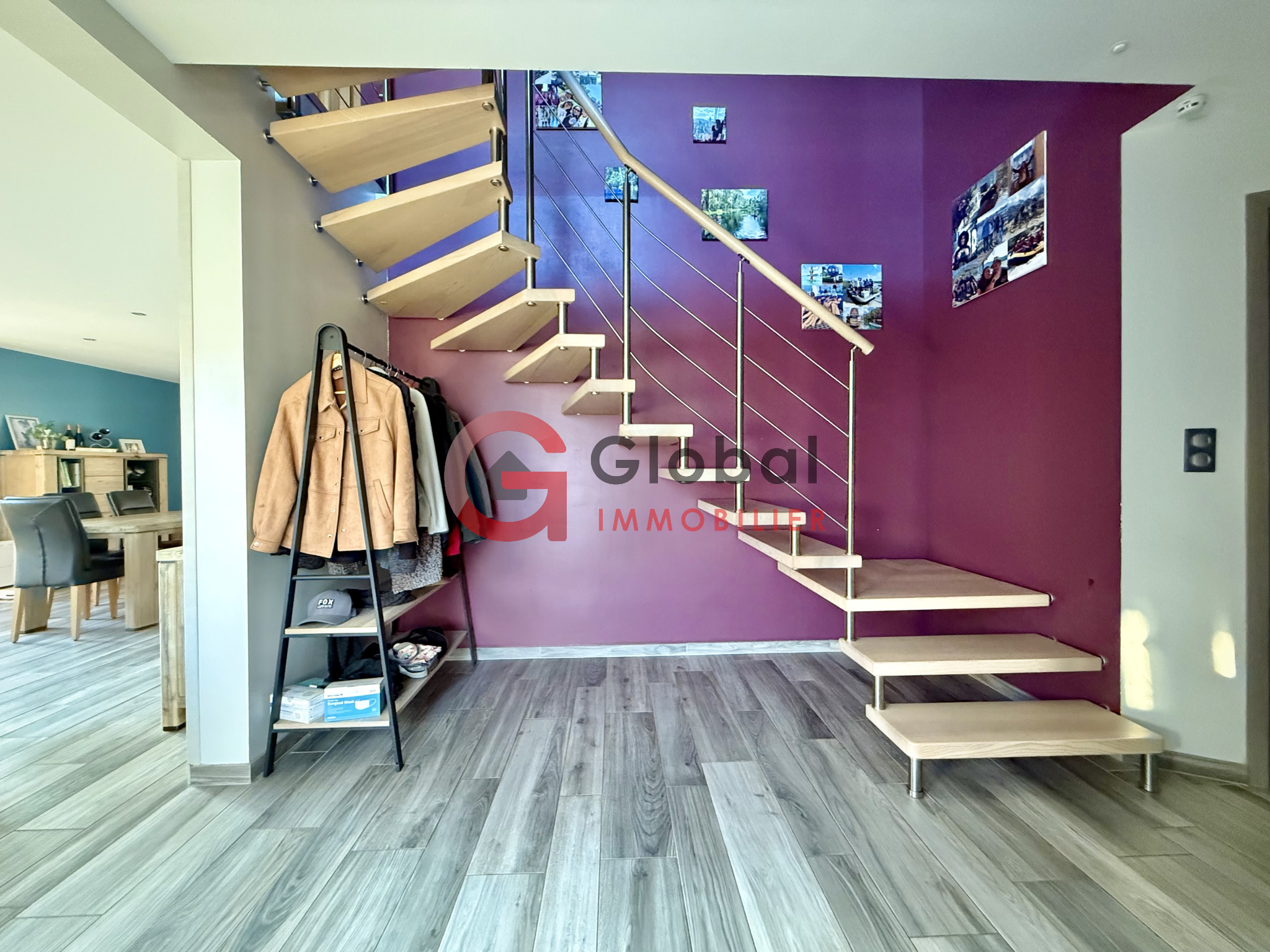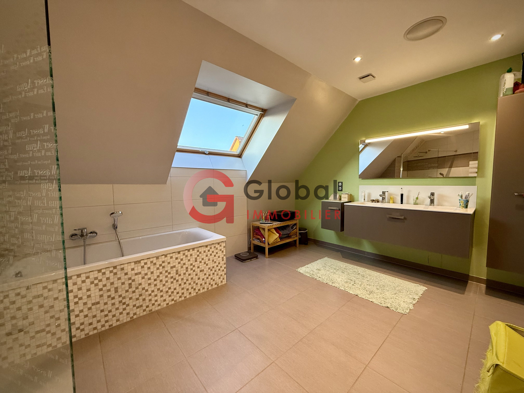 Edifiée sur un terrain de 5,79 ares, cette spacieuse maison de 168m2 (habitables) n'a pas fini de vous surprendre ! Elle se compose d'une entrée, d'une spacieuse et lumineuse pièce de vie donnant directement sur terrasse et jardin, de 4 chambres, d'une belle mezzanine, d'une grande salle de bain avec baignoire et douche à l'italienne, de 2 WC, ainsi que d'une belle buanderie avec accès au jardin.