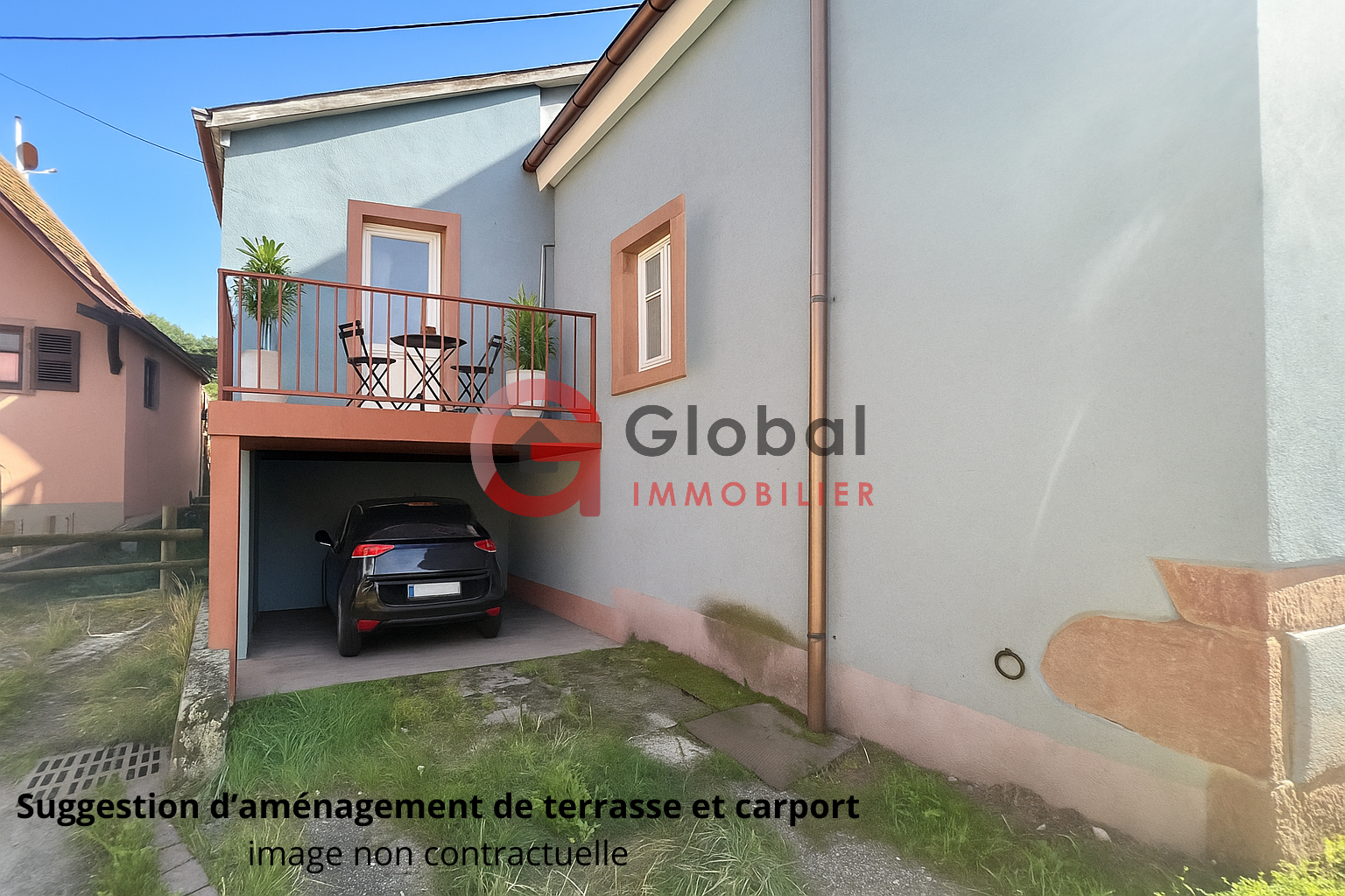 Suggestion d'aménagement de 2 terrasses et d'un carport.