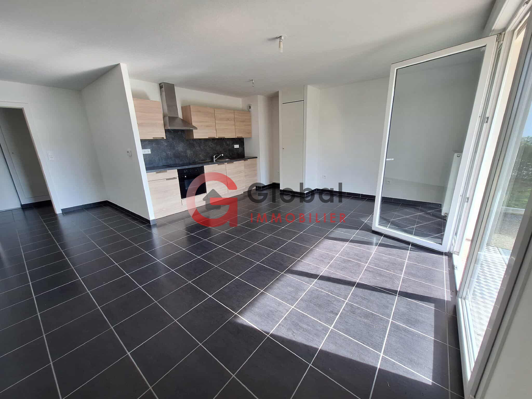 L’espace de vie se compose d’un séjour lumineux avec cuisine équipée ouverte, donnant directement sur une agréable terrasse privative — parfait pour profiter des beaux jours en toute tranquillité.