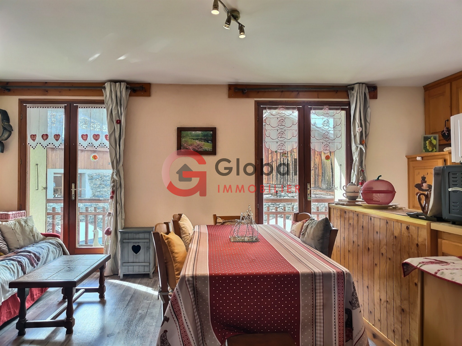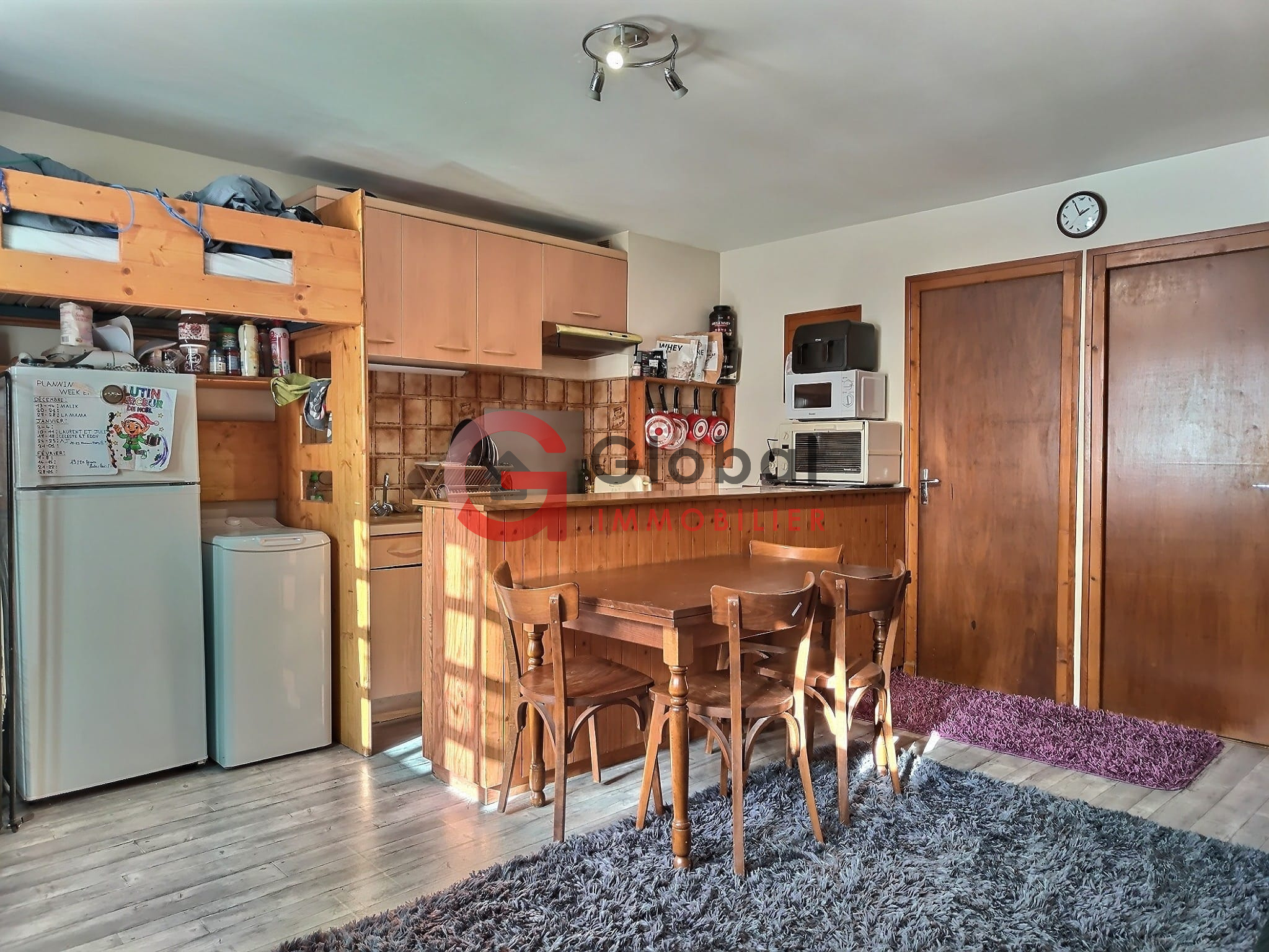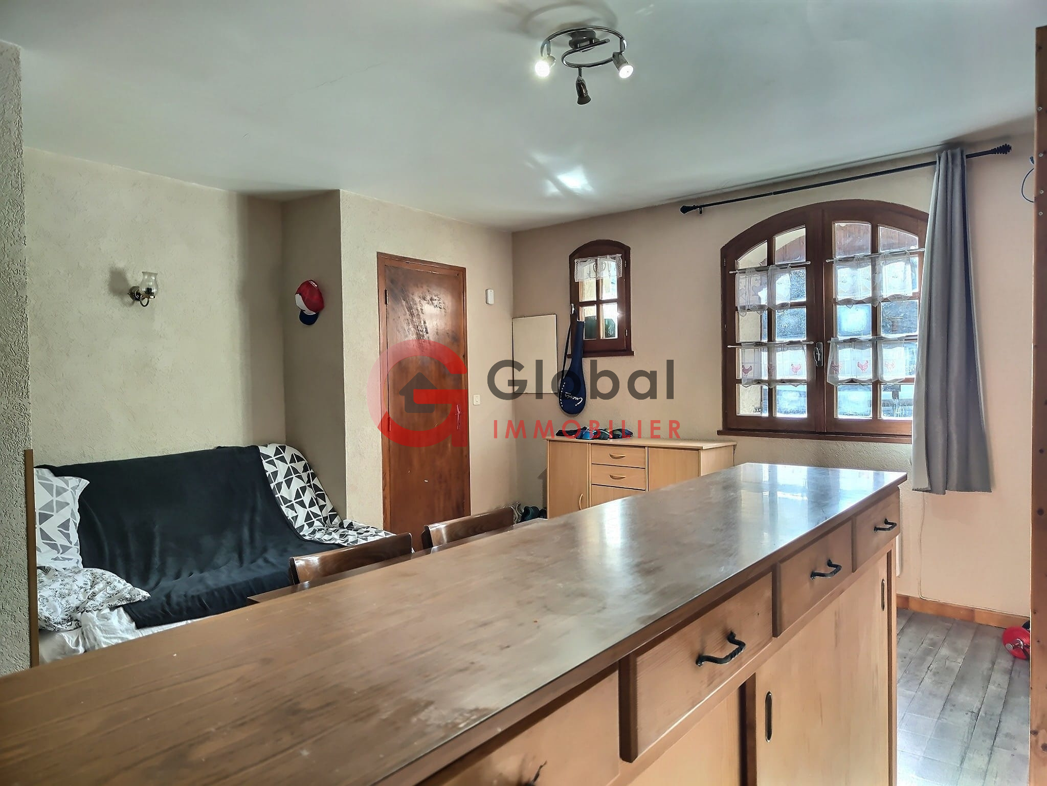 Développée sur deux niveaux, la maison offre une surface totale de 79 m². Elle est aujourd’hui divisée en deux studios indépendants, mais présente un fort potentiel de réunification pour créer une seule habitation familiale ou un pied-à-terre de montagne.