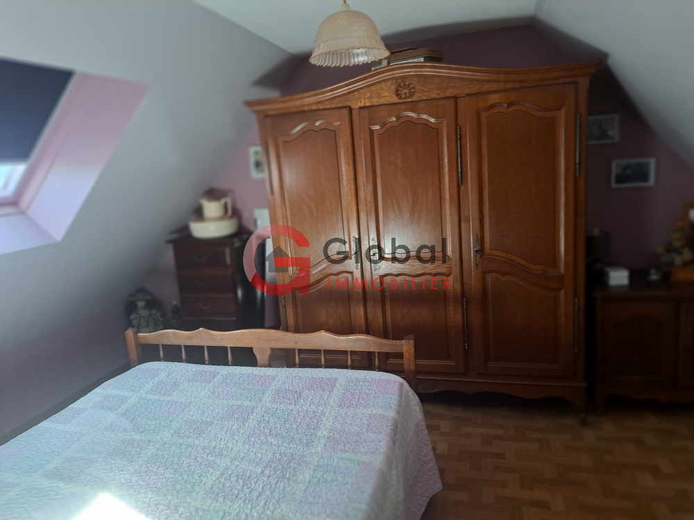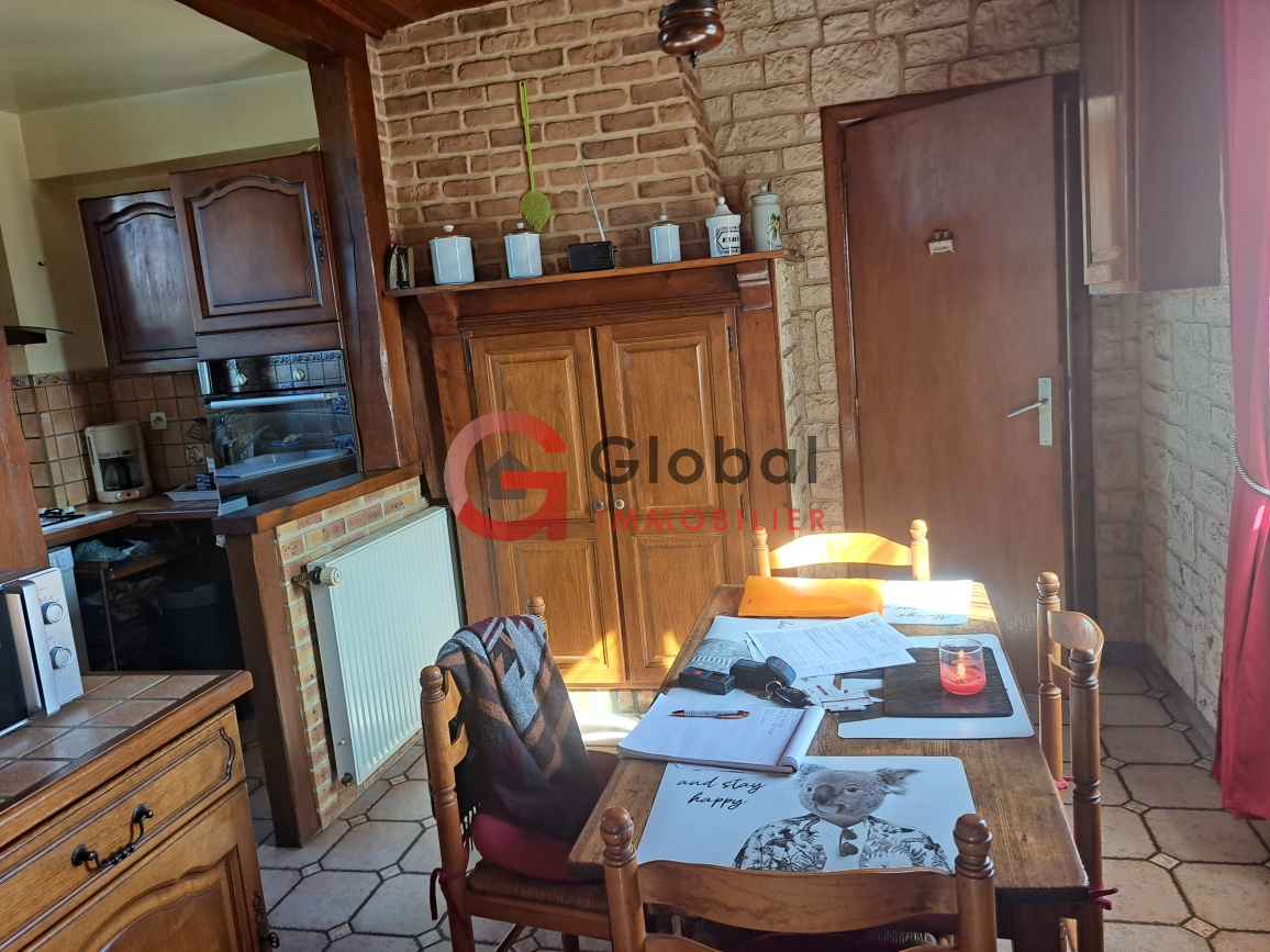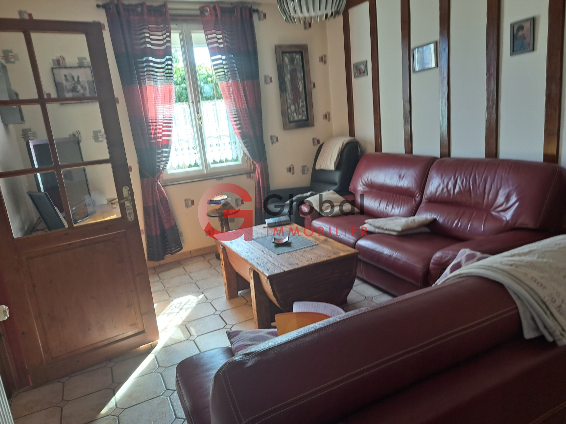 Maison de village de 5 pièces sur 120 m² comprenant : salon, séjour, cuisine indépendante équipée, arrière cuisine, buanderie, wc, douche. A l'étage : 2 chambres, bureau, salle de bain, wc. Jardinet avec terrasse de 20 m², store banne, garage double motorisé, volets roulants, double vitrage, chauffage fioul, chaudière entretenue, toiture ardoises, arrêt de bus juste en face de la maison.