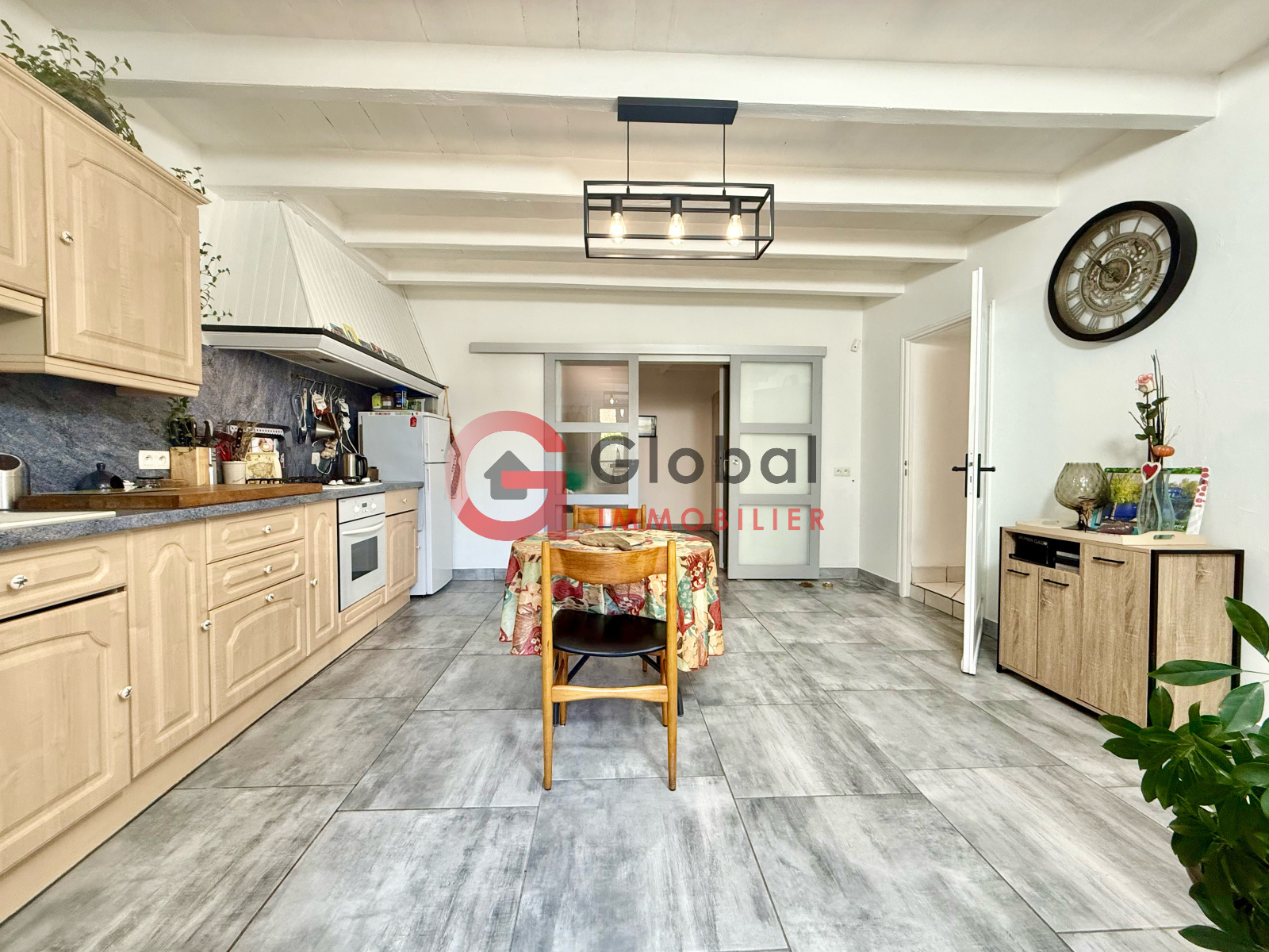 GLOBAL IMMOBILIER vous propose, en centre bourg de Saint-Hilaire-la-Palud, une maison comprenant une pièce de vie avec insert, une cuisine, quatre chambres dont une avec salle d’eau, un bureau, une seconde salle d’eau et deux WC.