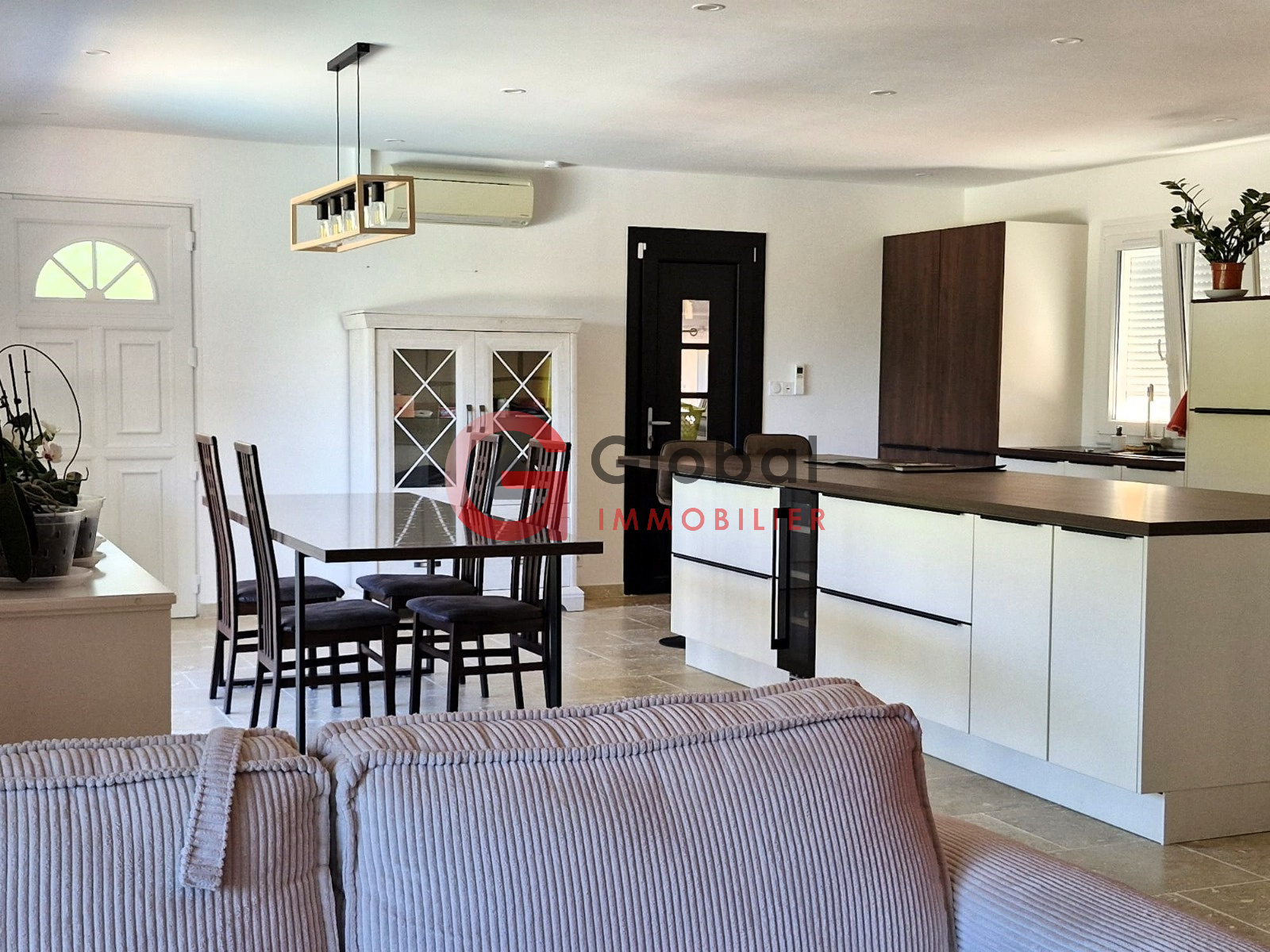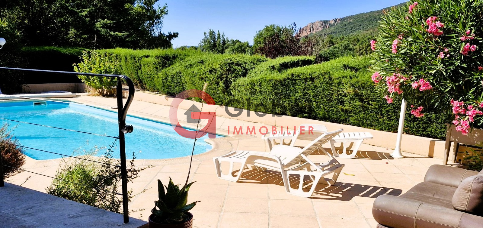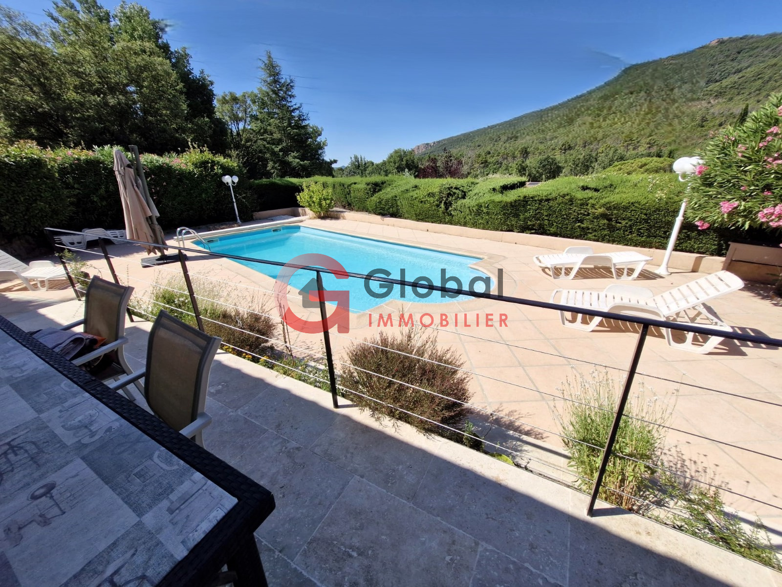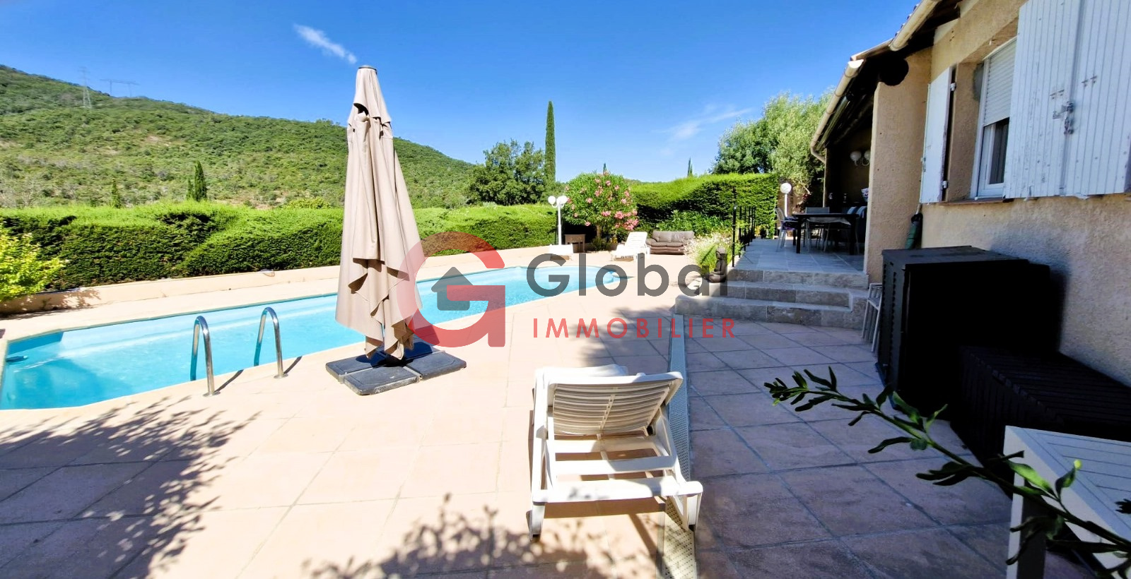 Messa Ehrlacher et Serge Escobar vous proposent dans un environnement calme et verdoyant unesuperbe villa rénovée de 115 m² sur un terrain de plus de 1 800 m². Spacieux séjour lumineux de 52 m² avec cuisine ouverte, 2 chambres, un grand bureau, salle d’eau, WC séparés. Studio indépendant idéal pour recevoir, profession libérale ou revenu locatif. À l’extérieur : piscine avec plage, terrain de pétanque, abri voiture, cabanon de jardin, climatisation. Vue imprenable sur les collines. Assainissement aux normes en cours. Terrain en partie constructible, fort potentiel d’agrandissement. Atouts : Calme, vue, excellent état, proche commodités, parfait en résidence principale ou secondaire.Taxe foncière 1351 € / an A VISITER SANS TARDER 06 07 62 44 41 OU 06 02 71 79 09