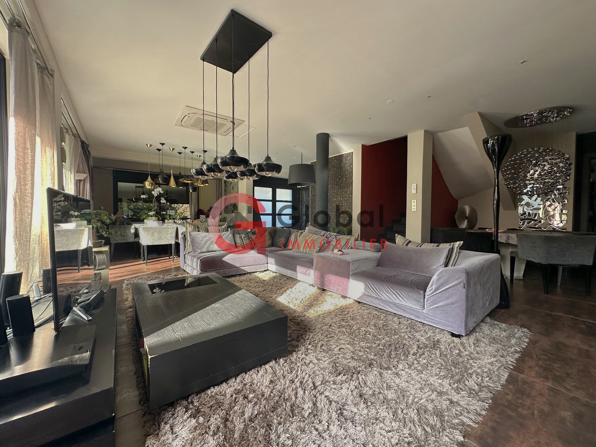 Depuis le séjour bénéficié d'une superbe vue sur la piscine avec une connexion directe sur l'extérieur.